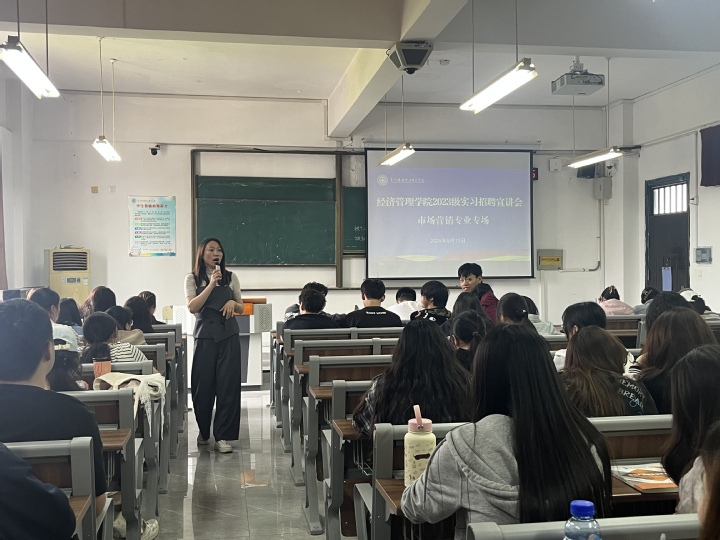5月13日,经济管理学院举办市场营销专业实习专场宣讲会,吸引百余名学生参与。活动邀请必胜客、太平人寿、东吴人寿三家企业进校宣讲,搭建校企双向对接平台,助力学生提升职业竞争力,实现高质量充分就业。活动由实习就业辅导员顾英佳主持。