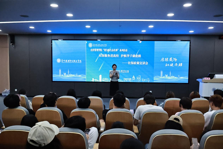 为帮助学生深入了解就业相关的社保政策,明确就业形势,拓宽就业视野,树立正确的择业观,为经管学子实习就业道路的顺利开展保驾护航,近日,经济管理学院于C3-101开展“社保服务进高校 护航学子就业路”社保政策宣讲会。此次宣讲特邀太仓市城厢镇社保所副所长沈宏和太仓市阳光人才网负责人李金总经理作为主讲人,学院学生代表参与。