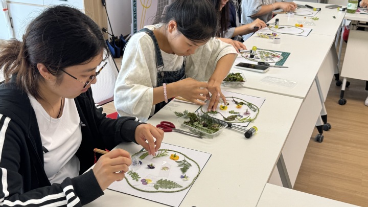 现场氛围热烈而有序,同学们沉浸在创作的乐趣中。每一件作品都独一无二,承载着创作者对自然的热爱与对美的独特诠释。