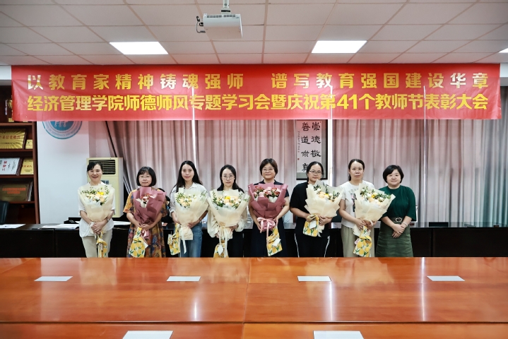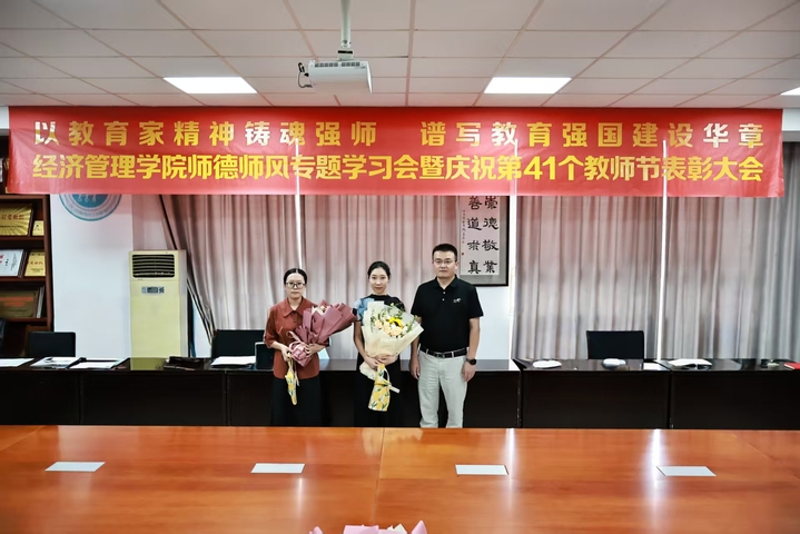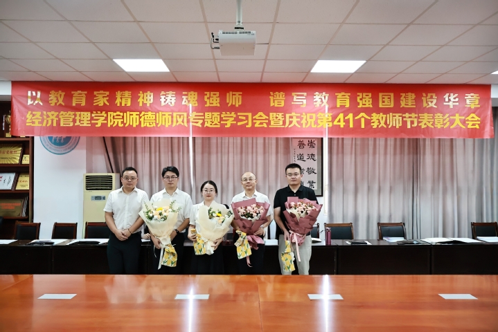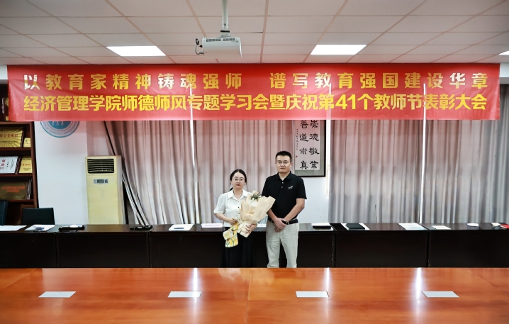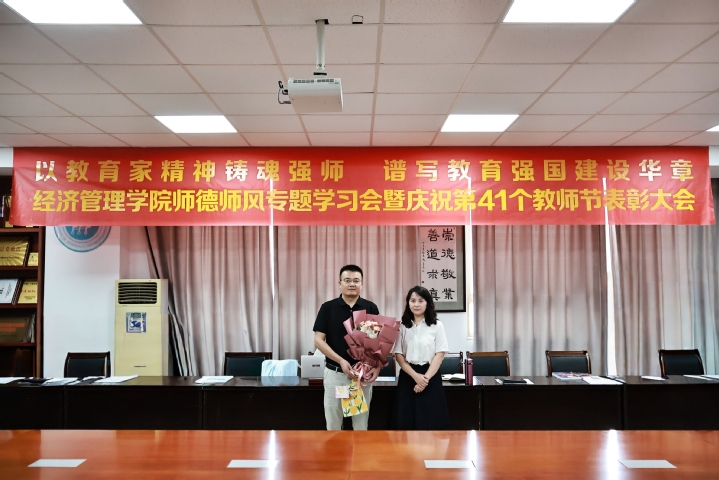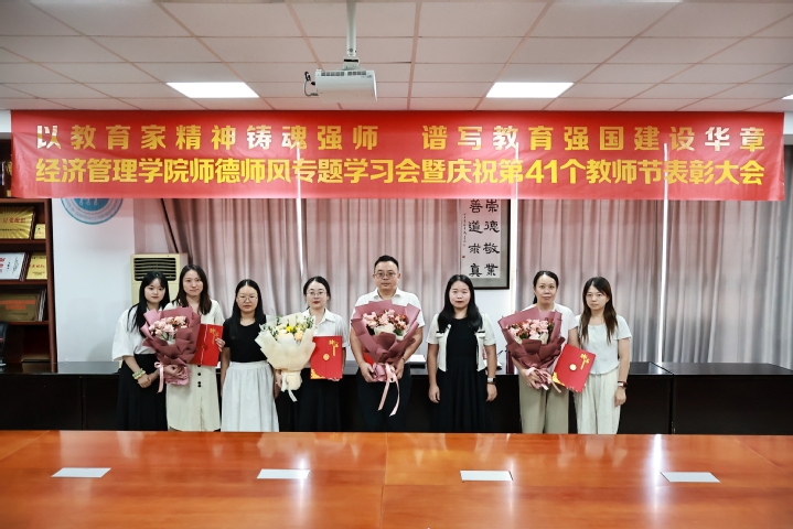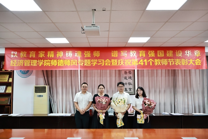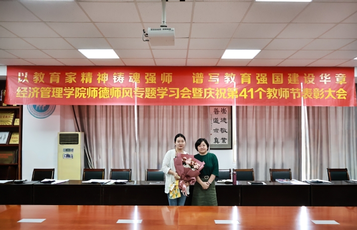 笔尖耕耘桃李地,默水浇灌智慧花。为了表彰先进,进一步加强师风师德建设,成就更加强大的教师队伍。在教师节当天,经济管理学院在C3-202会议室召开了“经济管理学院师德师风学习会暨庆祝第41个教师节表彰大会”。学院全体教师参加了此次大会。本次大会由党总支书记沈晓婷主持。