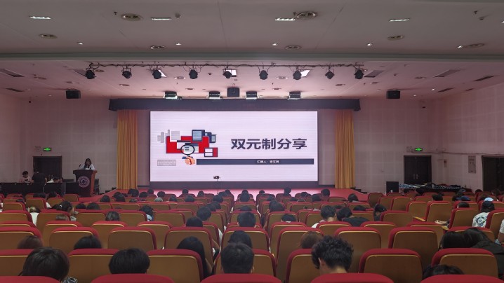 侯彦博老师从项目概况、项目实施、项目管理及项目评价四个方面向新生详细介绍了项目的具体运行情况。双元制项目优秀毕业生代表在发言中欣喜地告诉大家,自从加入项目后,变得自信而独立,不仅学到了扎实的专业技能,更懂得了责任与担当。