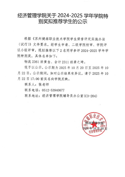 经济管理学院关于2024-2025学年学院特别奖拟推荐学生的公示