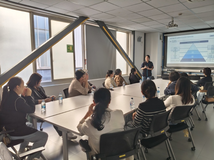 亿迈齿轮在全球汽车驱动系统领域享有盛名,培育人才并发展骨干,是亿迈100多年发展延续下来的一个重要支柱。亿迈太仓成立了专门的双元制学徒培训中心,2017年开始正式启动学徒制培训项目。亿迈齿轮的学徒中心经理马介宏老师、王逸雯老师围绕学徒制历史、本土化模式、培训计划、学徒发展等方面,详细介绍了亿迈齿轮学徒制系统,并与参观的老师们进行了深入交流和讨论。