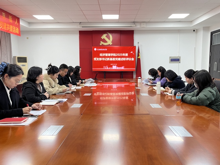 为深入学习宣传贯彻习近平新时代中国特色社会主义思想及党的二十大、党的二十届三中、四中全会精神,贯彻全面从严治党要求,强化基层党组织的政治引领与组织建设,充分发挥党支部的战斗堡垒作用及党员的先锋模范作用,12月10日下午,经济管理学院党总支在C3-202会议室召开2025年度党支部书记抓党建工作述职评议会。经济管理学院党总支委员、各党支部书记、支部委员、党员代表参加了述职评议会。