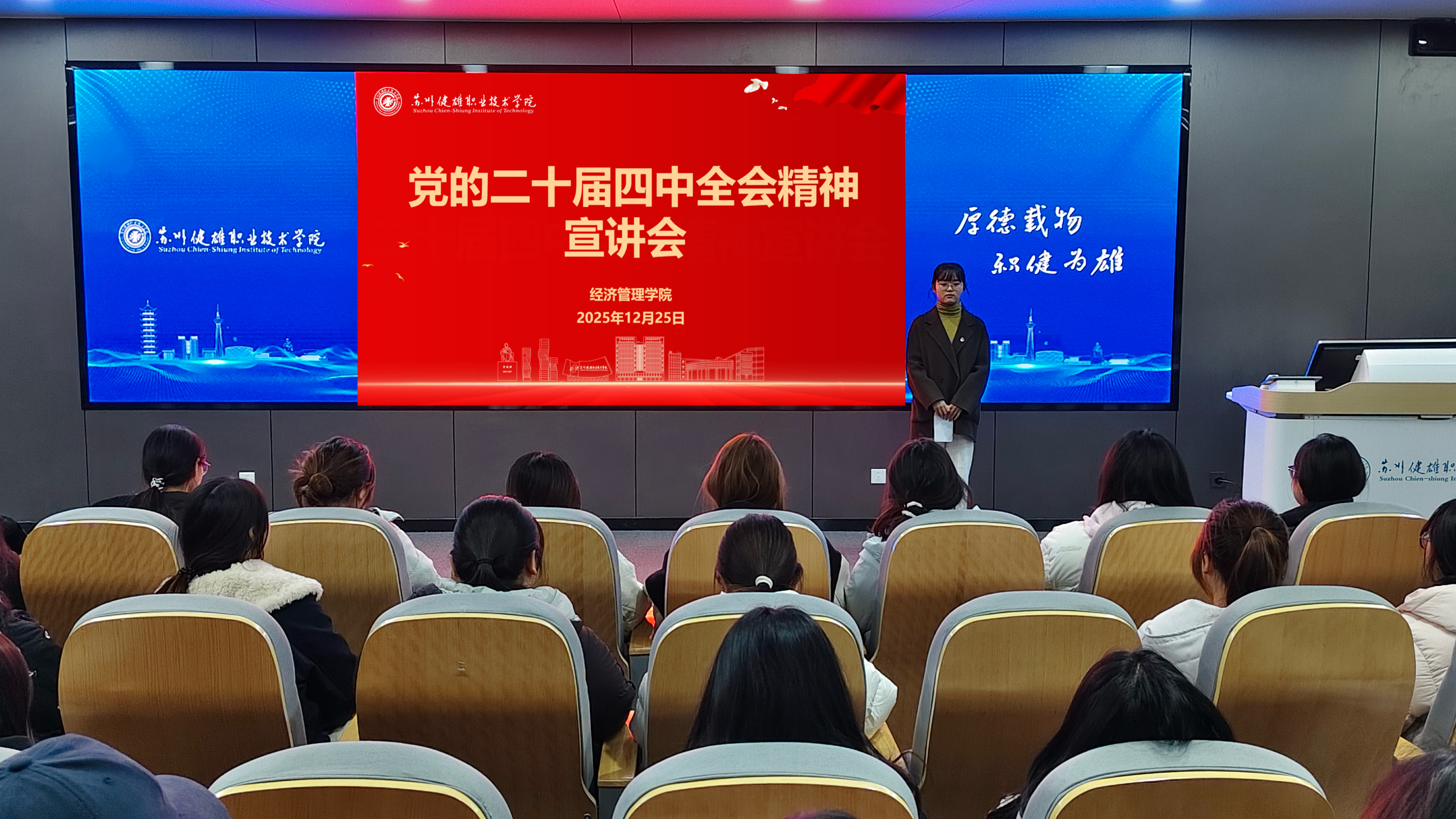 为推动党的二十届四中全会精神深入人心、直达青年学子,帮助学院学生精准把握全会精神实质与实践要求,12月25日,经济管理学院于C3-101教室举办《党的二十届四中全会精神》专题宣讲会。活动由“星火”青年宣讲团指导老师李夷文组织,宣讲团成员李紫妍同学担任主讲人,百余名学生到场参会。