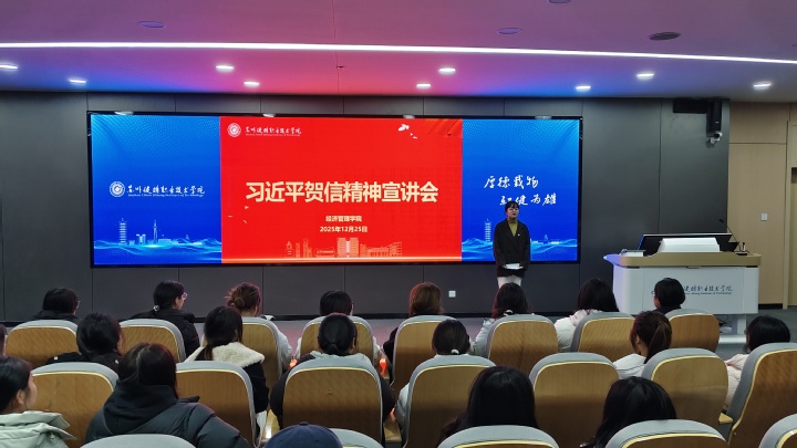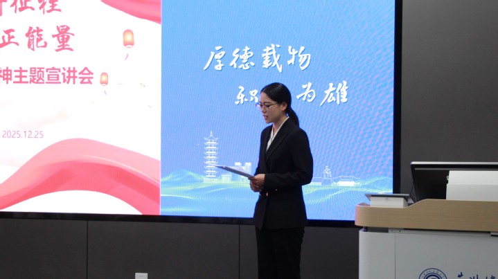 12月24日,经济管理学院于C3-101教室举办专题宣讲会,深入学习《为奋进新时代新征程传递真善美传播正能量——习近平总书记贺信指引志愿服务事业高质量发展》重要贺信精神。本次宣讲会由“星火”青年宣讲团指导老师李夷文统筹组织,宣讲团成员胡秀琳担任主讲人,百余名学生到场参与学习。