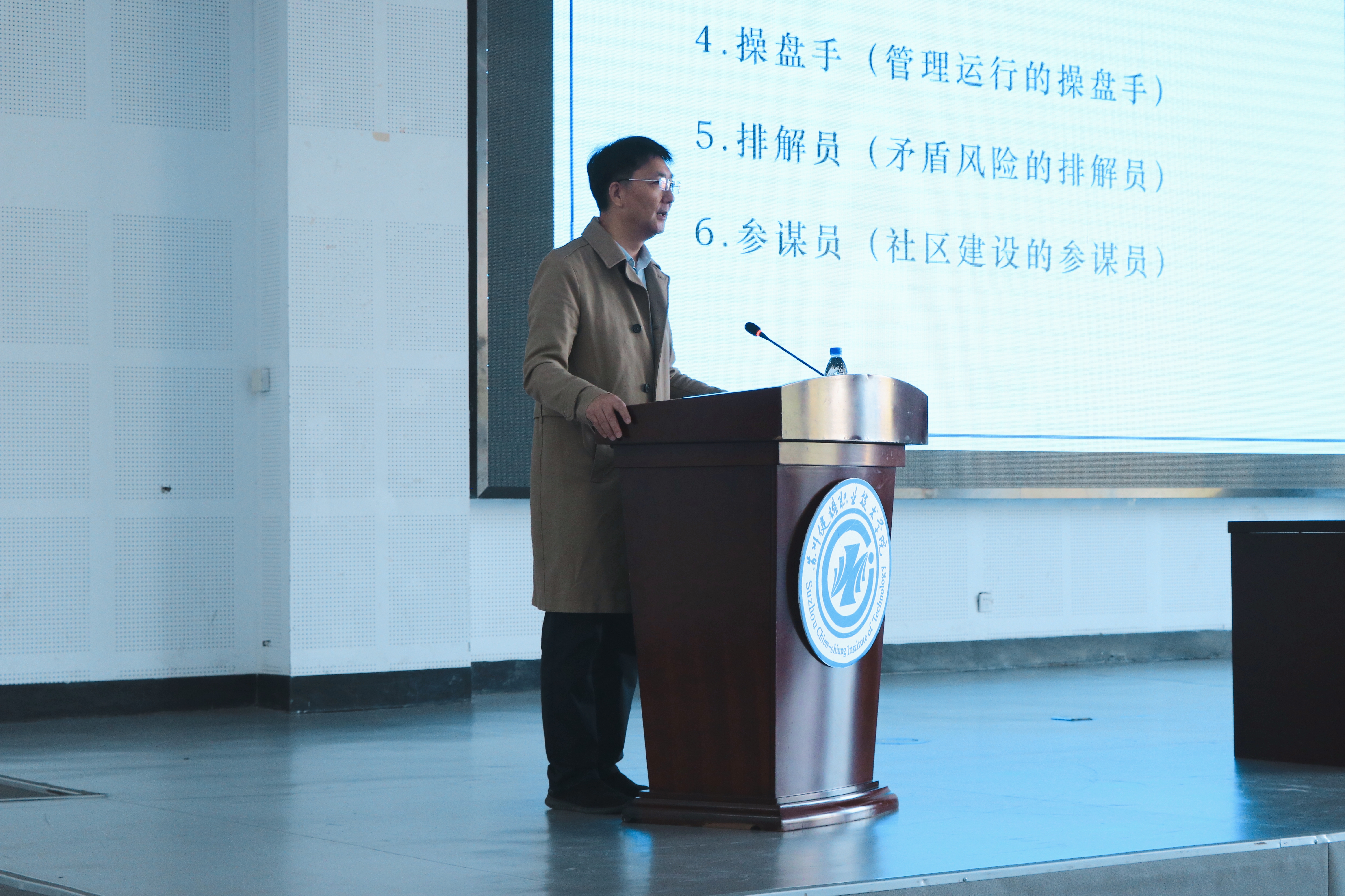 开班仪式后,苏州大学党委委员、党委学生工作部部长、人民武装部部长、学生工作处处长董召勤以《高校辅导员在“一站式”学生社区育人建设中的作用》,从高校辅导员的时代使命与角色定位、“一站式”学生社区建设原因与科学内涵、高校辅导员在“一站式”学生社区中的作用等方面展开论述,内容翔实,案例丰富,既有顶层设计,也有落地的路径指引,为全体辅导员老师理解并参与“一站式”学生社区提质增效建设打开了新视野、提供了新思路。苏州经贸职业技术学院团委书记、学生工作部副部长苏雷则从“初心”——辅导员“大思政角色”到“匠心”——工匠型思想政治教育模式,再到“艺心”——最美辅导员品牌化道路,用丰富的实践和深刻的思考,诠释了“最美辅导员”的精神内核与职业路径。