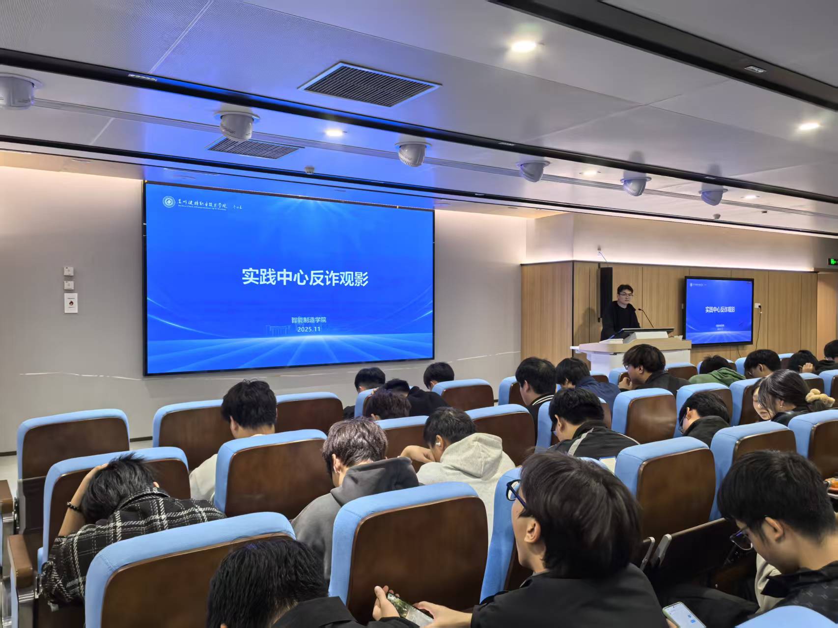 此前于11月6日,中心还组织了“防范于心,反诈于行”主题观影活动,以提升学生防范电信诈骗的意识和能力。活动伊始,辅导员强调了在数字化时代增强安全意识的重要性。随后播放的反诈影片通过真实案例改编的剧情,生动揭露了“刷单返利”“冒充客服”等常见诈骗手法。影片中同龄人的受骗经历引发了同学们的深刻反思,大家纷纷表示将在日常生活中提高警惕,做反诈知识的积极传播者。