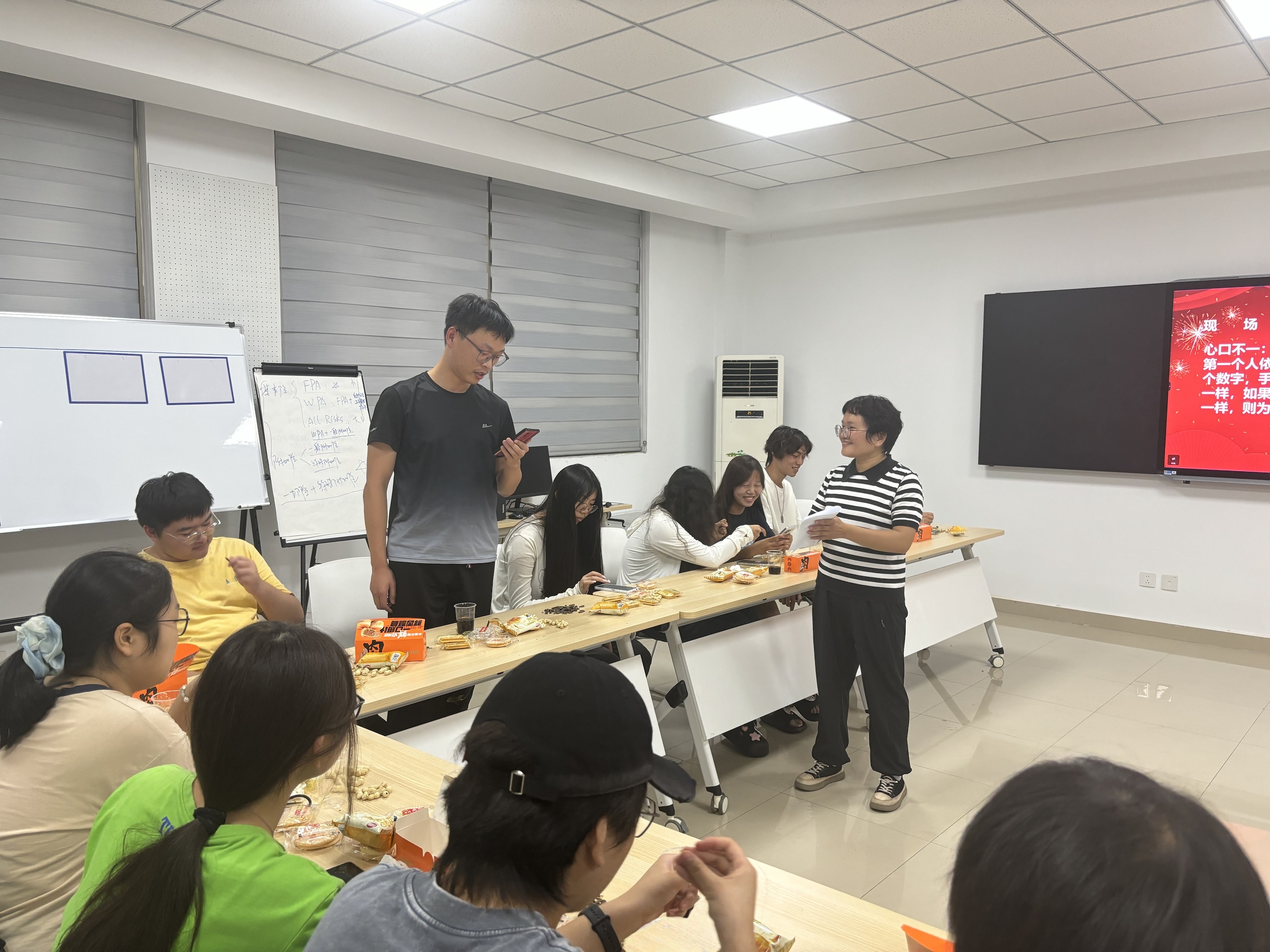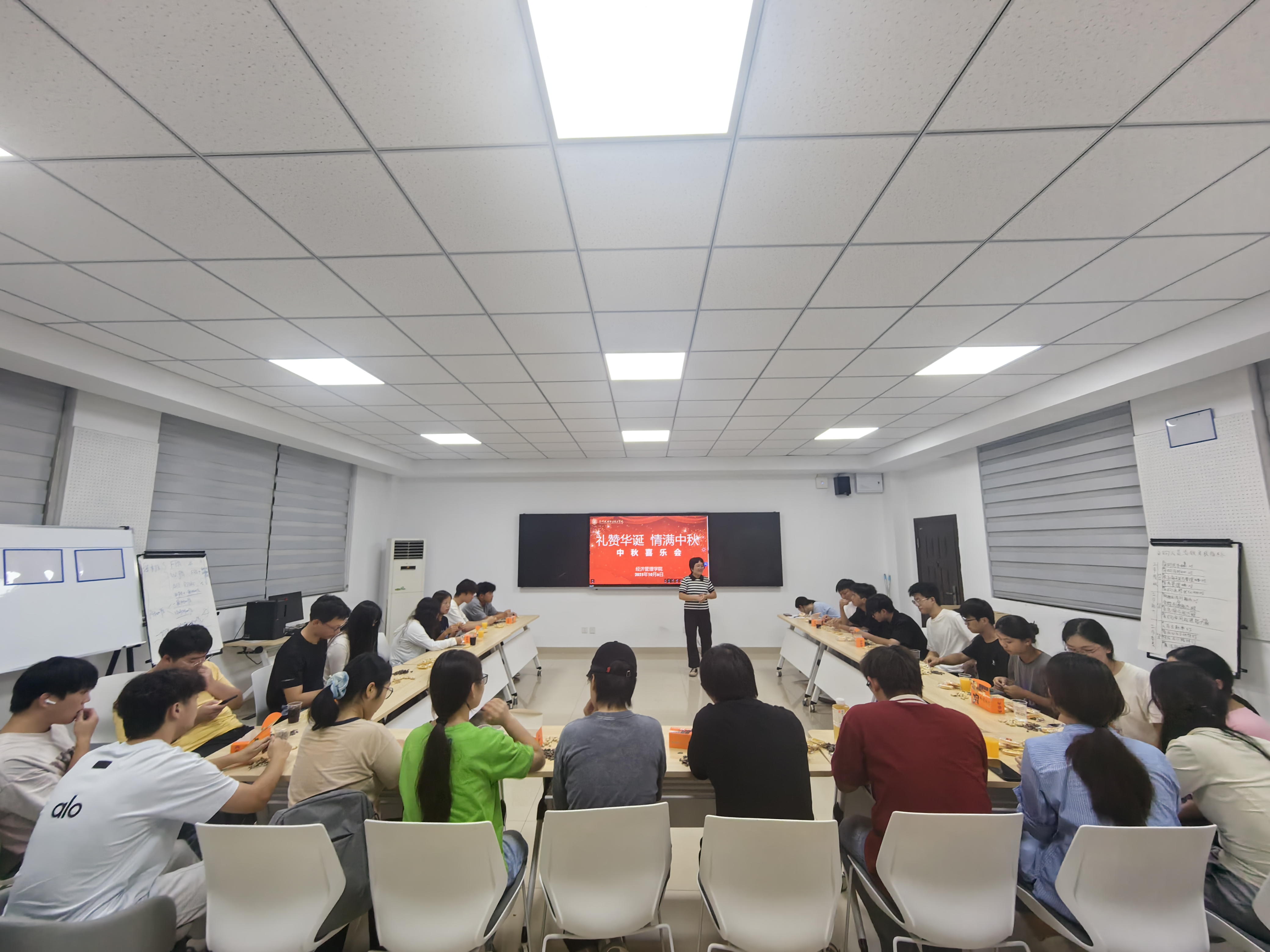 随后,现场旋即转入轻松愉快的中秋佳节环节。妙趣横生的猜灯谜与互动游戏点燃了同学们的参与热情,欢声笑语不绝于耳。伴着香甜的月饼与饮品,一份份温暖传递到学子手中,让未能归家的他们舌尖甜润,心头温暖,深刻体会到“此心安处是吾乡”的深切归属感。