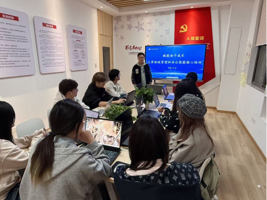 为提升班级干部综合能力,筑牢班级管理根基,10月26日晚,艺术设计学院在“一站式”学生社区举行“班级管理与办公技能核心培训”,2025级部分学生干部参加培训,学院辅导员康文杰老师担任主讲人 。