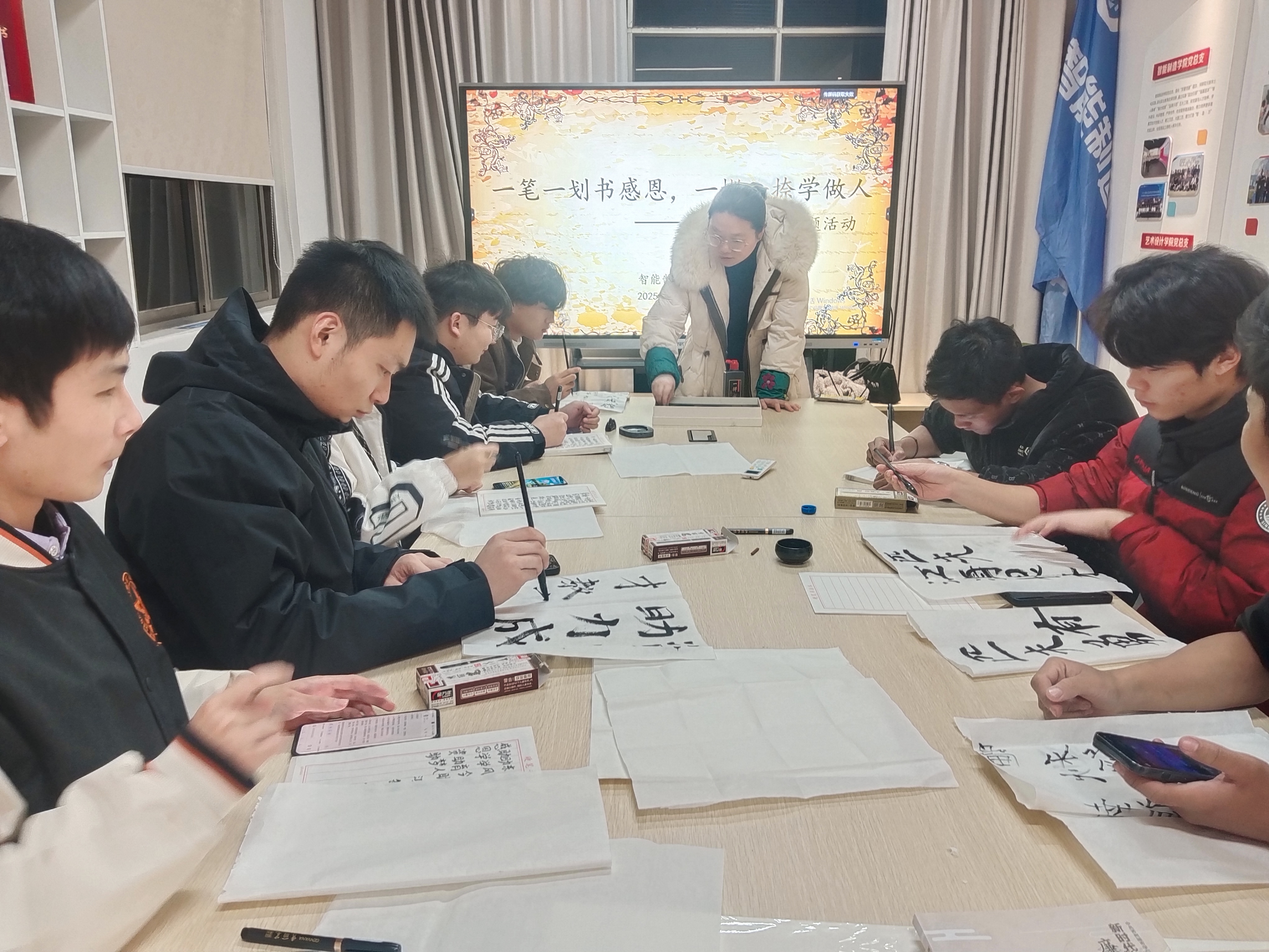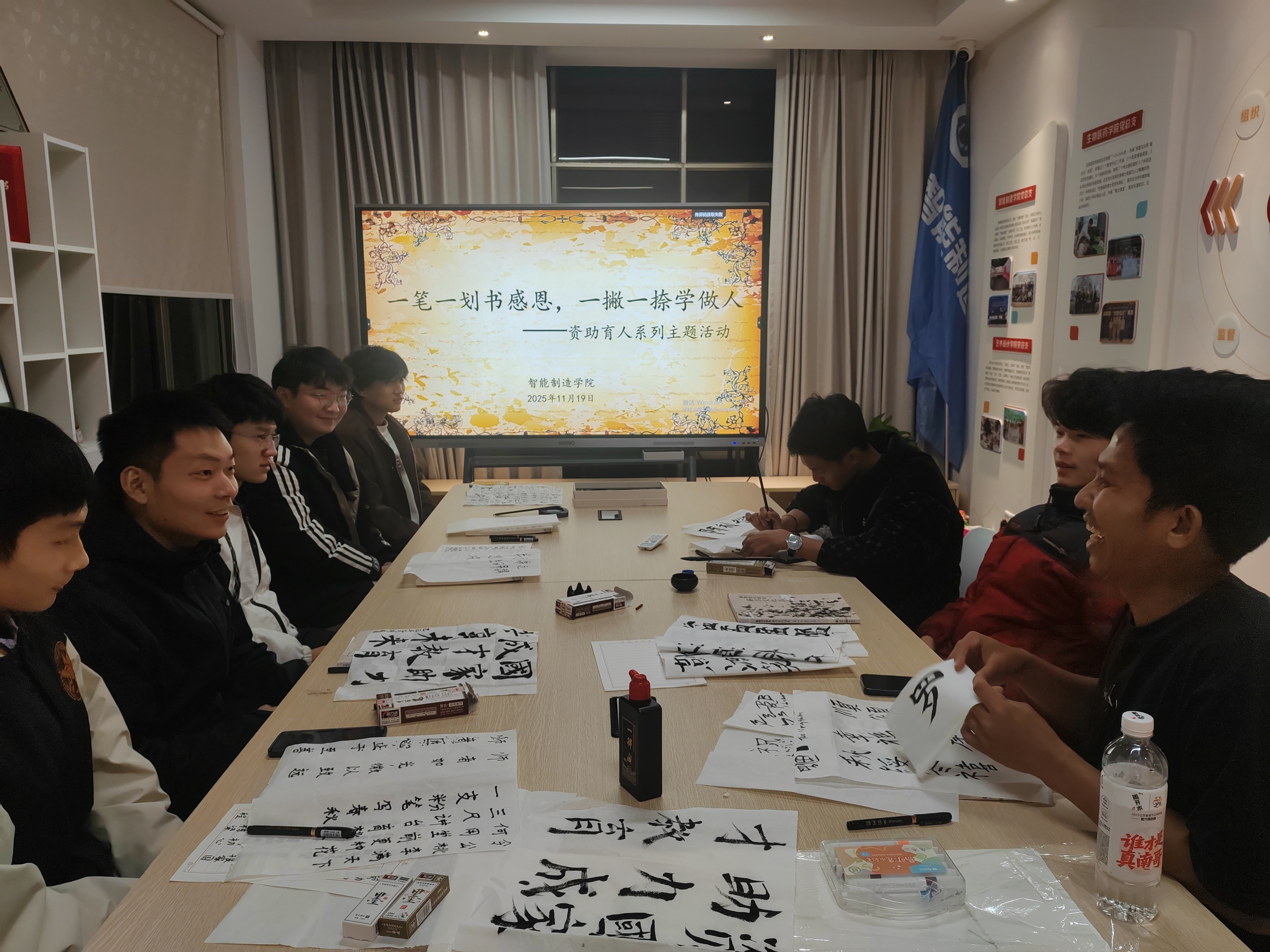为深入推进资助育人工作,弘扬中华优秀传统文化,11月19日,智能制造学院在一站式学生社区举办了一场以“一笔一划书感恩,一撇一捺学做人”为主题的以“笔”会友交流活动,学院受助学生、少数民族学生、留学生代表参与。