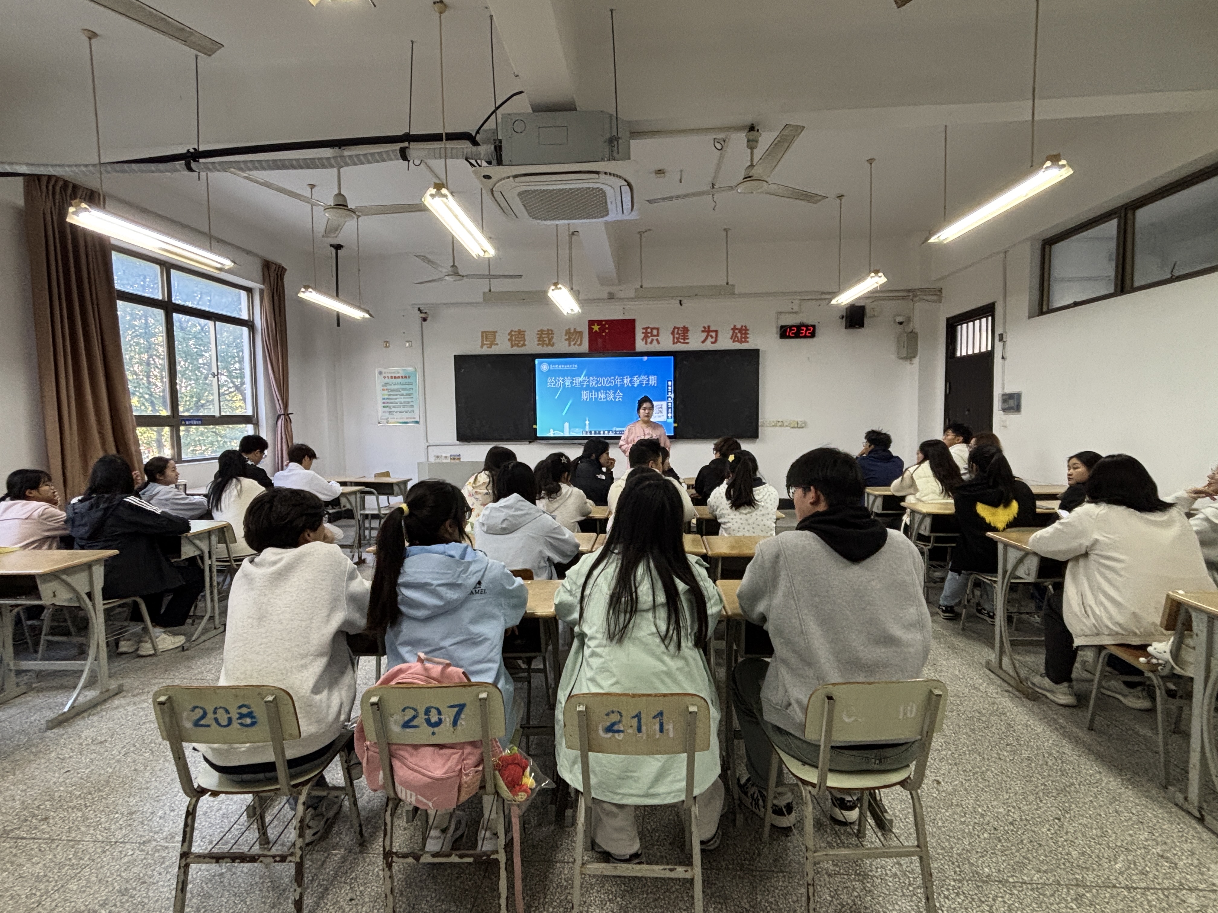 为全面了解本学期教学运行情况,倾听学生心声,进一步提升教育教学质量与管理服务水平,11月10日-11日,经济管理学院分10批次在紫薇社区、学院会议室等召开25年秋学期期中座谈会。经济管理学院党政领导班子、辅导员、各专业负责人及近100余名学生代表参会。