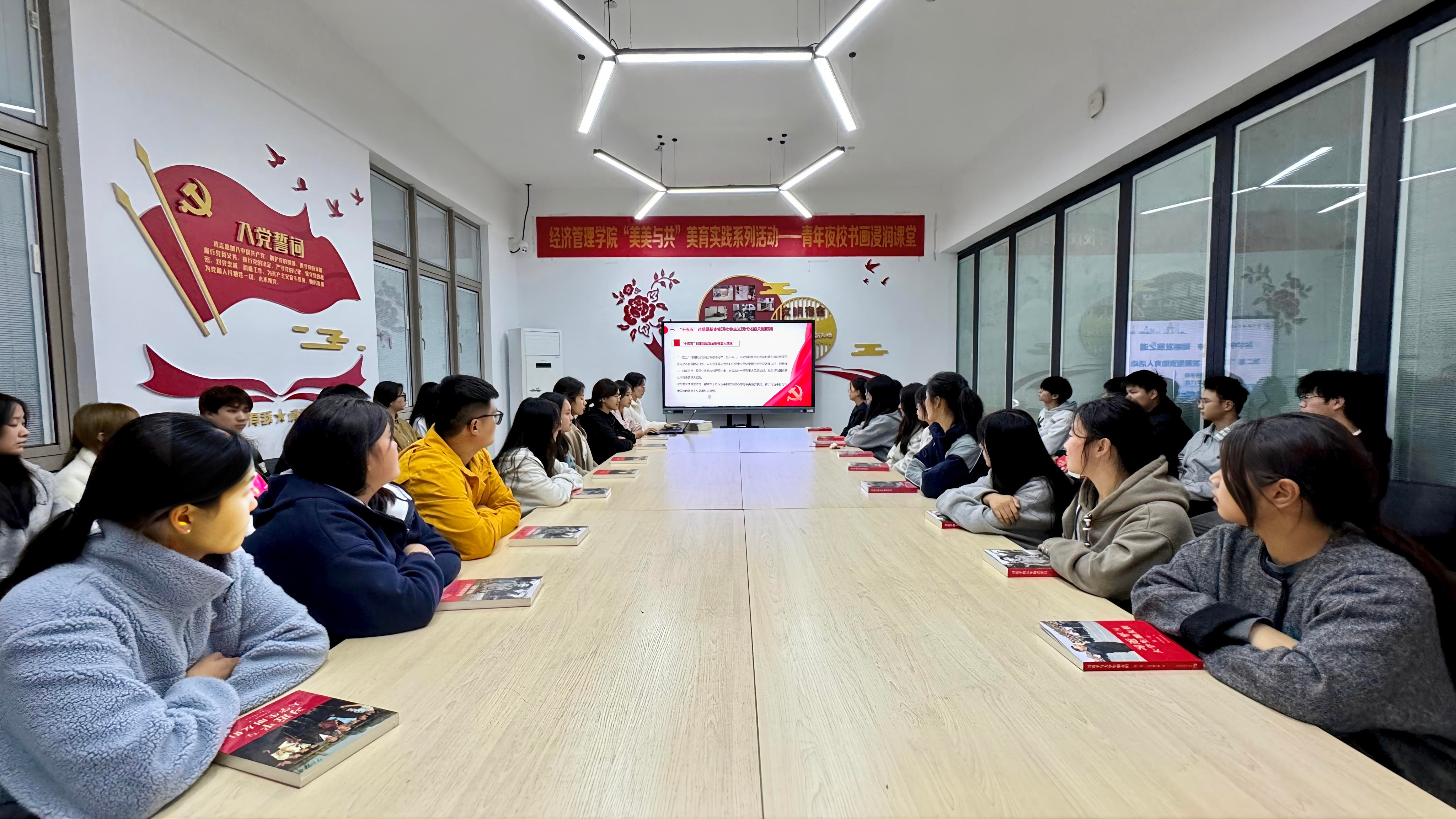 开班仪式上,学院向同学们发放了《习近平的七年知青岁月》《习近平与大学生朋友们》等书籍,引导同学们从阅读中汲取奋斗力量。随后进行的首次专题学习会上,同学们在张丽丽带领下,集体学习了《中共中央关于制定国民经济和社会发展第十五个五年规划的建议》。学习聚焦科技创新、青年发展等关键词,将宏观政策与学生的专业学习、职业规划紧密联系,帮助同学们在政策解读中明确奋斗方向,把个人成长融入国家发展蓝图。