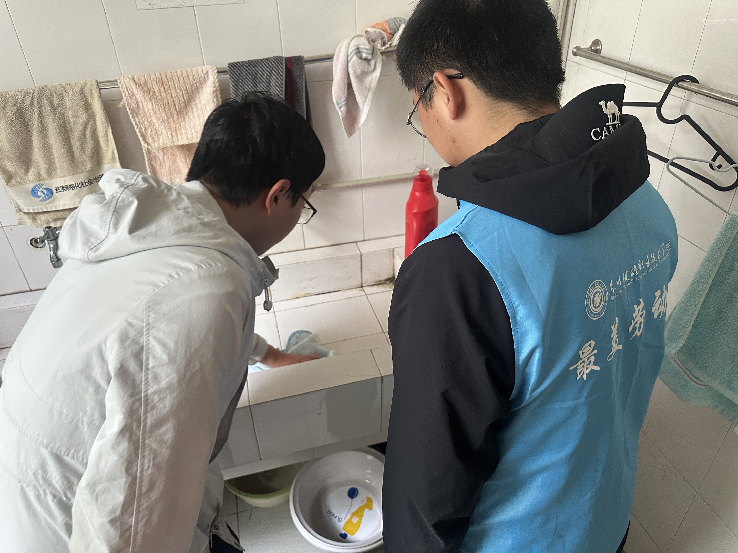 活动现场,辅导员李振宇带领学长志愿者们,聚焦卫生间、洗手台、地面等卫生“重灾区”,结合《宿舍内务标准化评分》进行手把手教学。从污渍清洁到物品收纳,志愿者们倾囊相授,新生们积极实践,互动交流氛围热烈融洽。