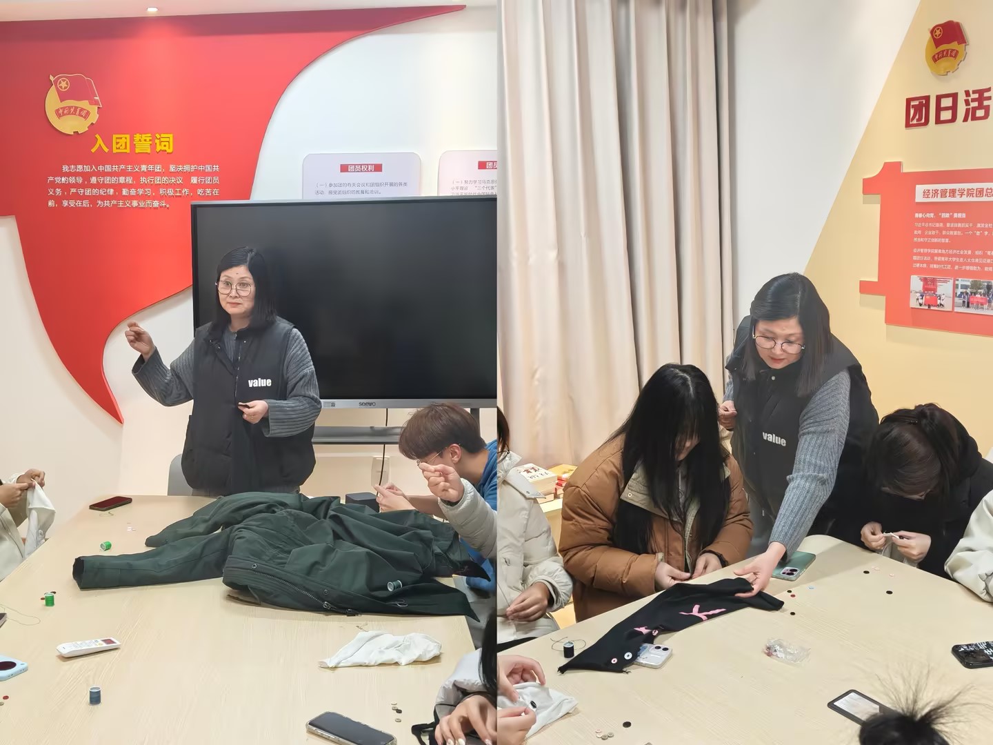学生们认真聆听、虚心求教,随后纷纷拿出布料、纽扣等材料动手实操。起初手法生疏的他们主动互助交流,在宿管阿姨的手把手指导下逐步掌握技能,在实践中体会到劳动的乐趣与成就感。下一步,学院将滚动推出“宿舍收纳日”等主题实践活动,以“小技能”撬动“大成长”,让劳动教育真正融入学生日常。(图文/李振宇 审核/陈东生)