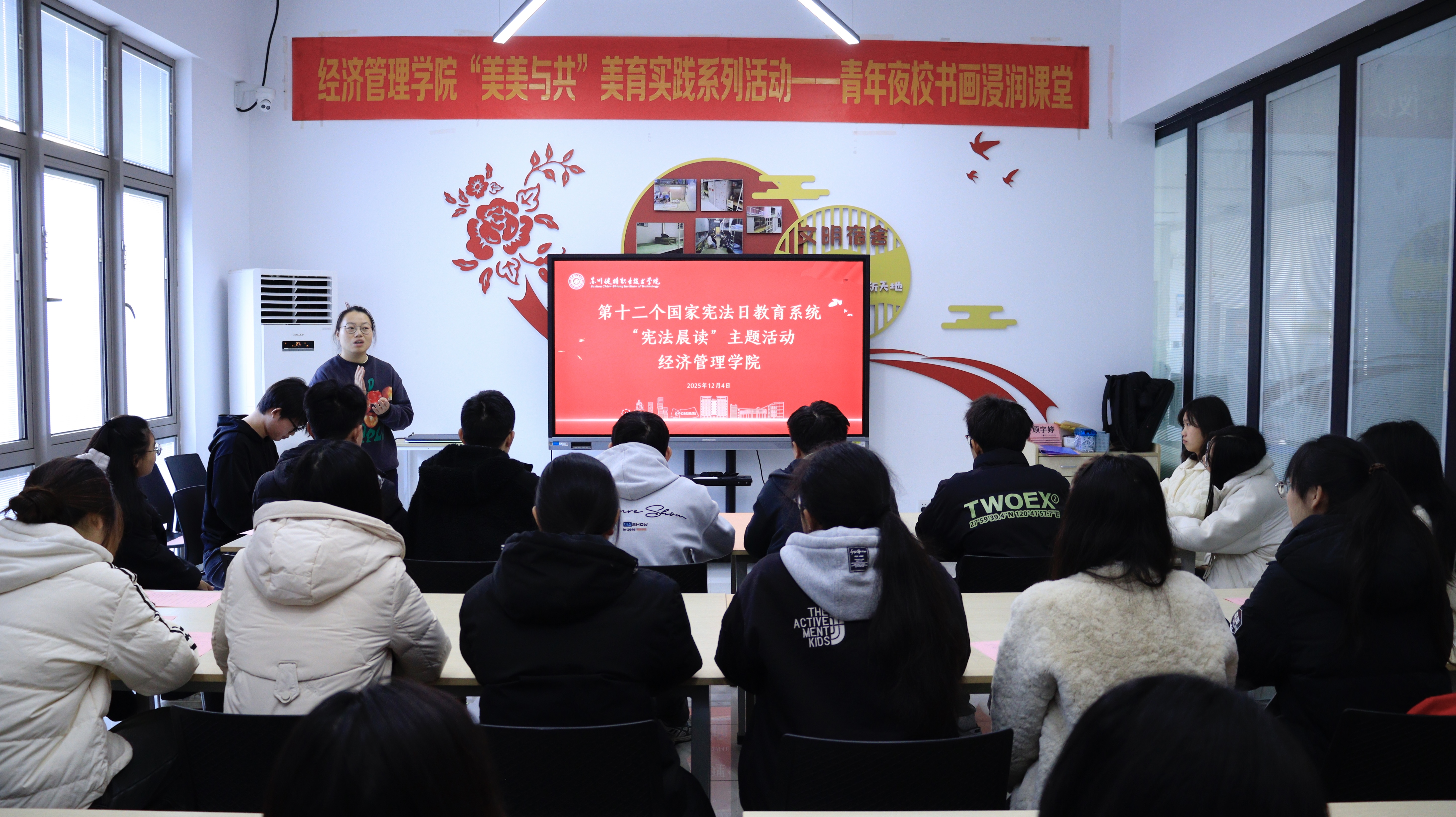经济管理学院始终高度重视法治教育工作,通过开展宪法晨读、法治副校长座谈会、模拟法庭等系列活动,构建全方位、多层次的法治教育体系。此次活动是学院落实国家宪法日宣传教育要求的重要举措,旨在引导青年学生树立正确的法治观,为培养担当民族复兴大任的时代新人筑牢法治根基。(图文/雷婧翎 审核/沈晓婷)