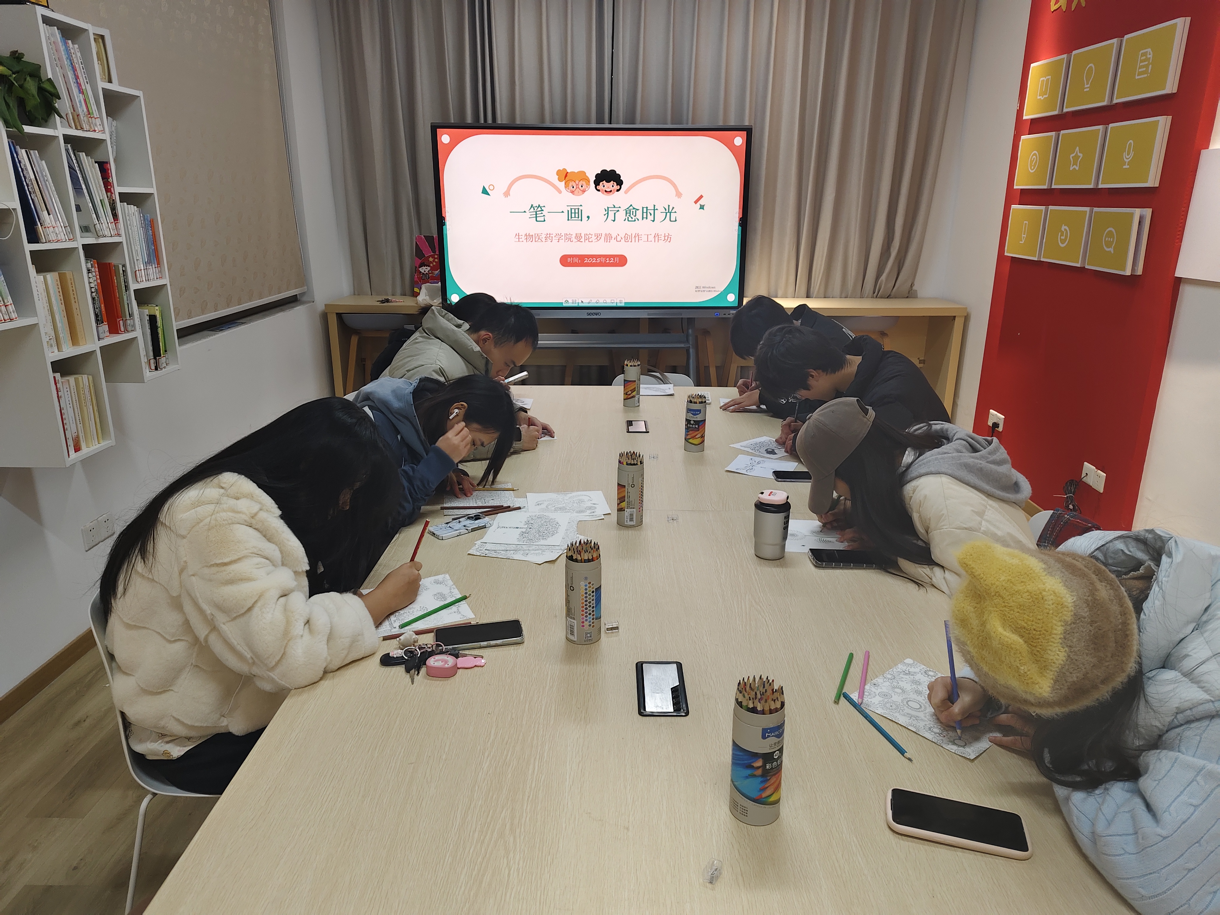 此次曼陀罗静心创作活动,将心理健康教育与艺术实践有机结合,不仅为同学们提供了情绪宣泄的有效渠道,更丰富了“一站式”学生社区的文化生活,为校园心理健康建设注入了温暖力量。