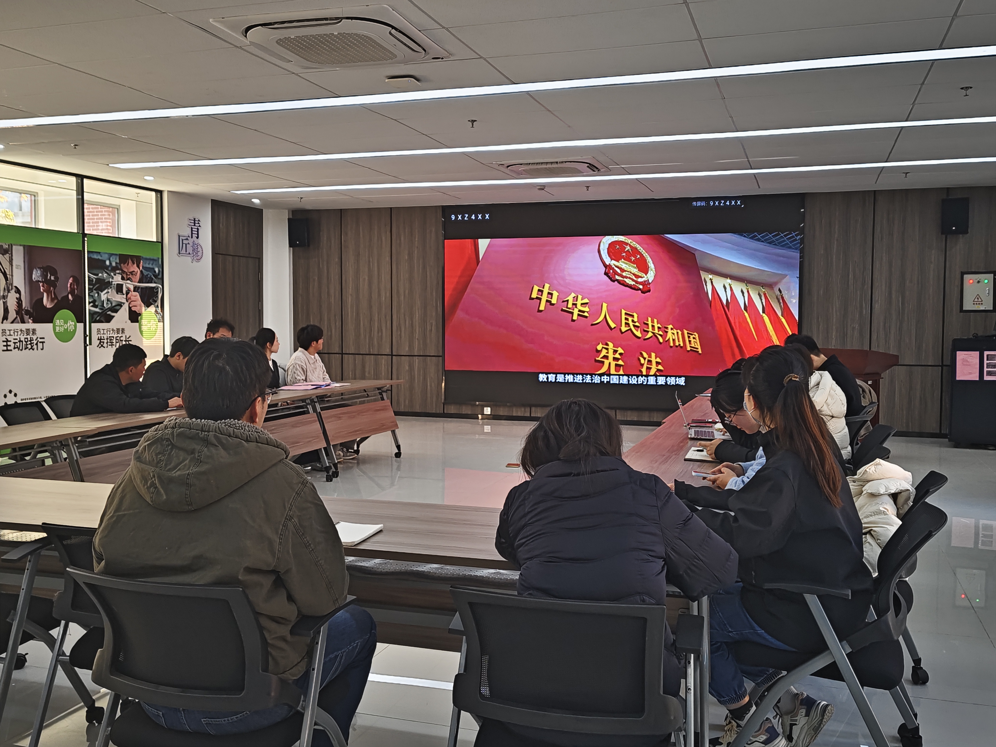 晨光洒满健雄校园,法治之声激荡人心。在第十二个“国家宪法日”来临之际,为深入学习贯彻习近平法治思想,将宪法精神与工匠精神精准融合,12月4日,智能制造学院于D1-103会议室举行“沐宪光之辉,诵法治之魂”宪法晨读活动。支部师生党员共同参与这场兼具仪式感与专业温度的法治教育实践课。