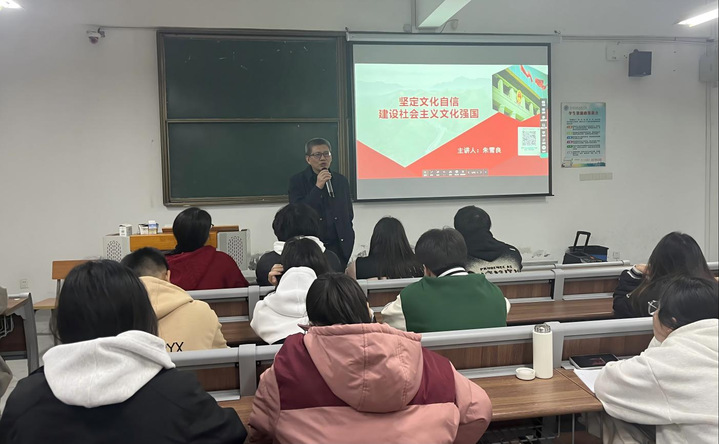 朱老师在授课中强调了文化自信的重要性,号召在座的时代青年,需要增强文化自信,学习和传承好中华优秀传统文化,将传统文化的核心价值理念内化于心、外化于行,用实际行动践行文化自信;同时需要关注社会热点和民生问题,用所学的专业知识和技能汇聚成文化的力量引导社会风气、凝聚人心、推动社会进步。