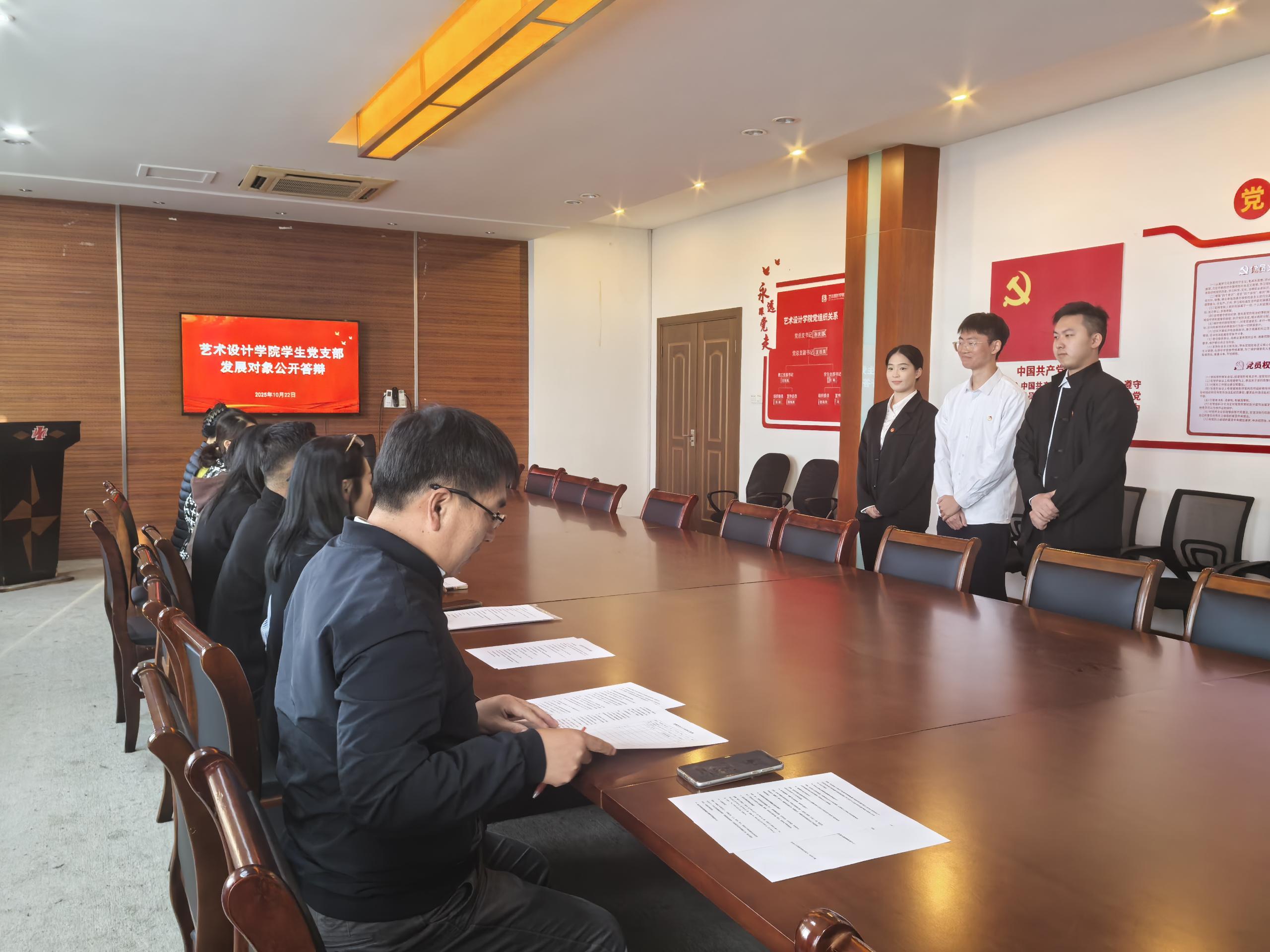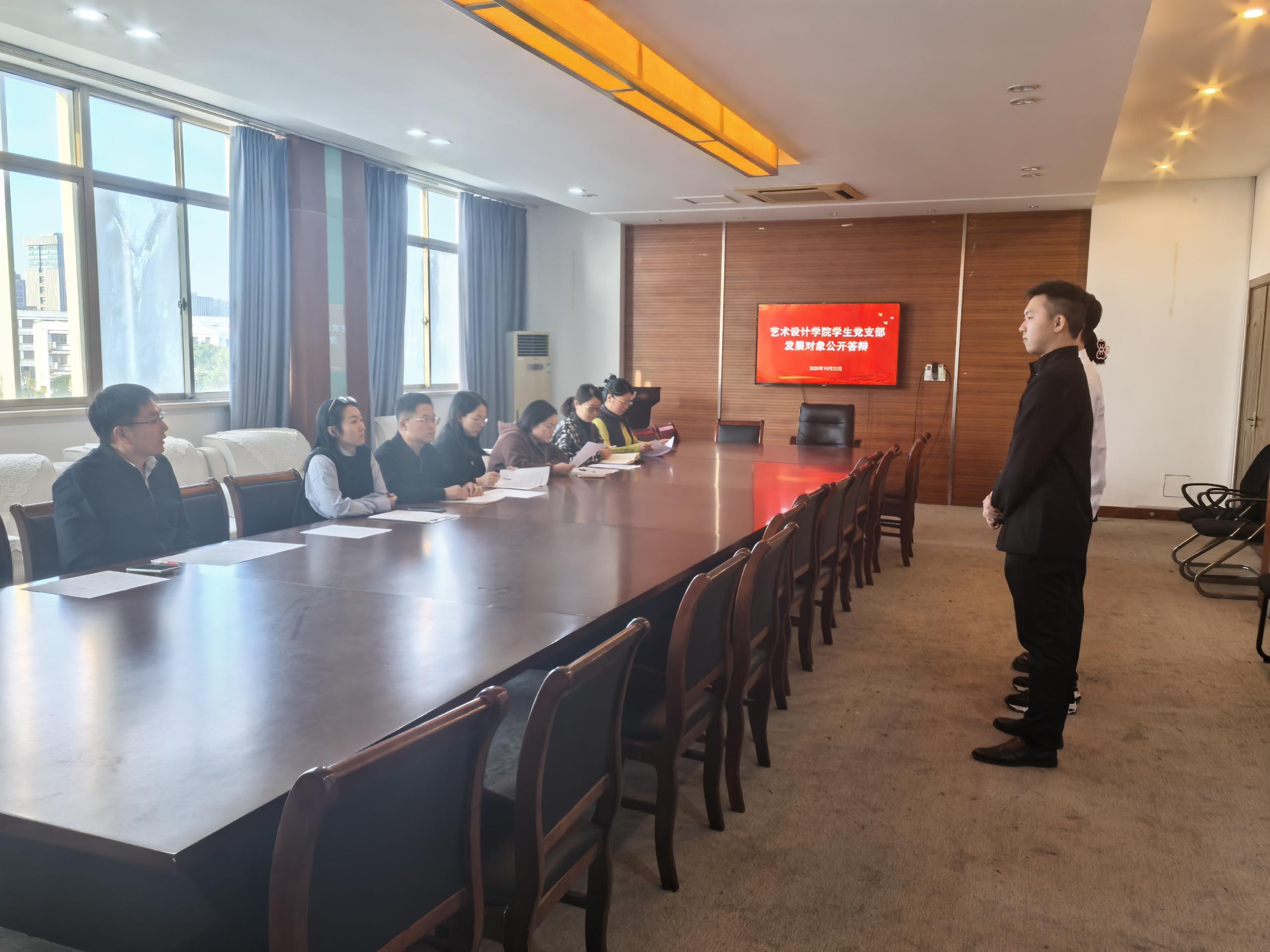 为深入贯彻新时代党的建设总要求,严格党员发展程序,强化发展对象的党性修养与责任担当,近日,艺术设计学院在A404召开党员发展对象公开答辩会。陈夏红益、蒋天乐、张昊然三位发展对象依次答辩,学院党员代表、师生评审及部分学生代表参会,共同见证三位同志的成长与担当。