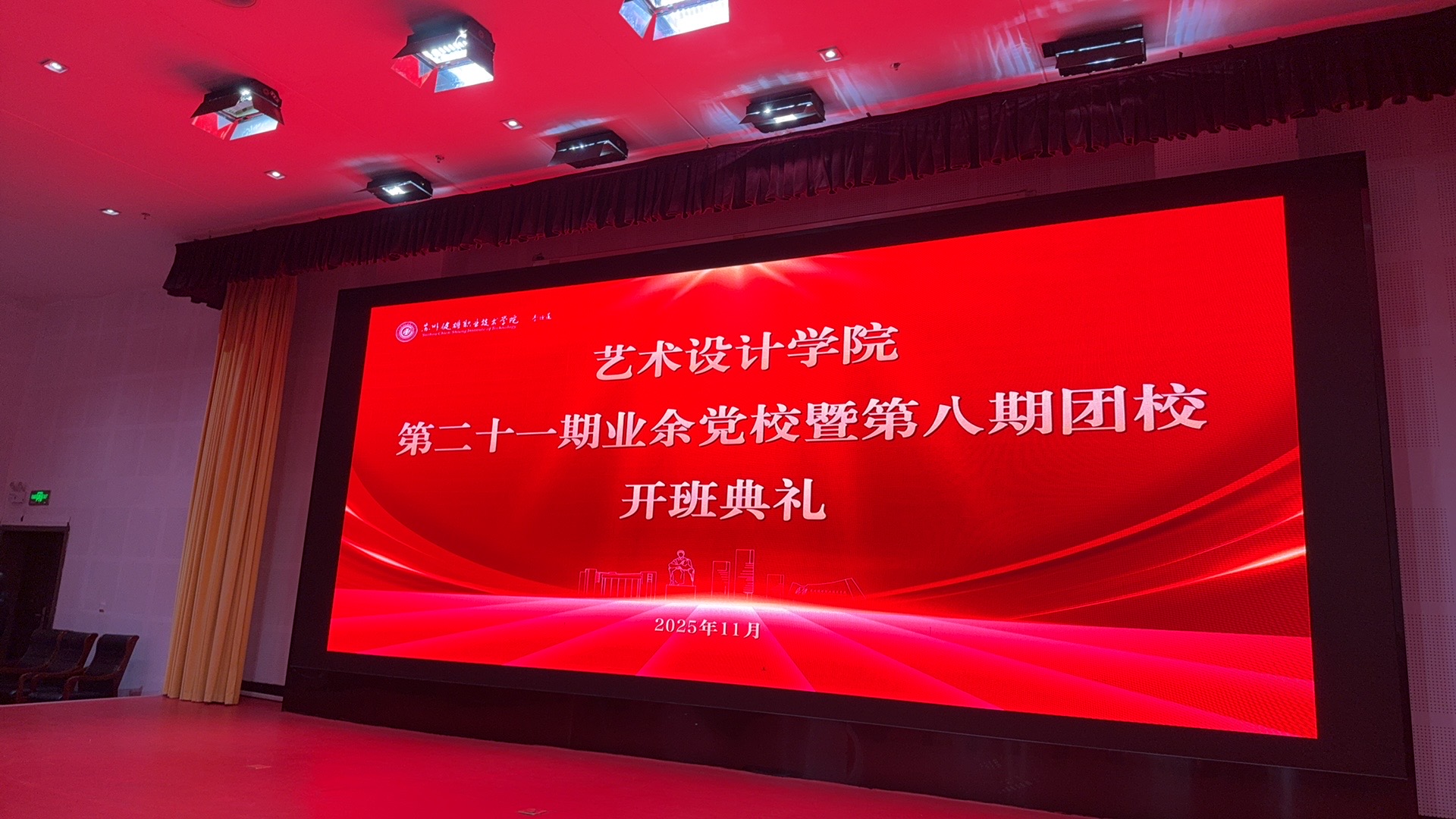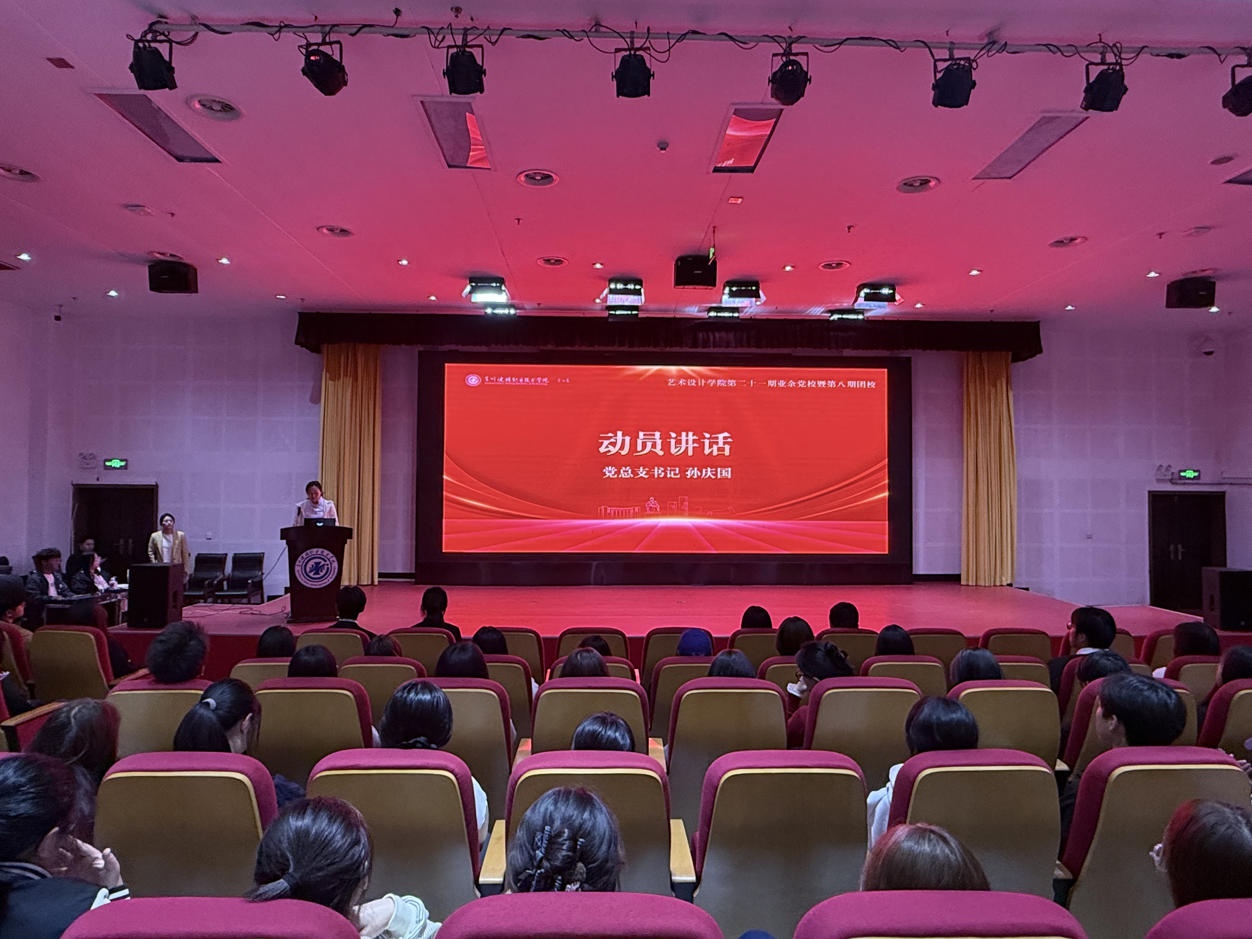 在全国深入学习贯彻党的二十届四中全会精神、奋力推进中国式现代化建设的关键时期,11月10日晚,艺术设计学院第二十一期业余党校暨第八期团校开班典礼在图书馆报告厅举行,参与此次开班典礼人员有艺术设计学院党总支书记孙庆国、副书记王钰岚,学生党支部全体教师,以及参加此次课程的71名入党积极分子和95名入团积极分子。