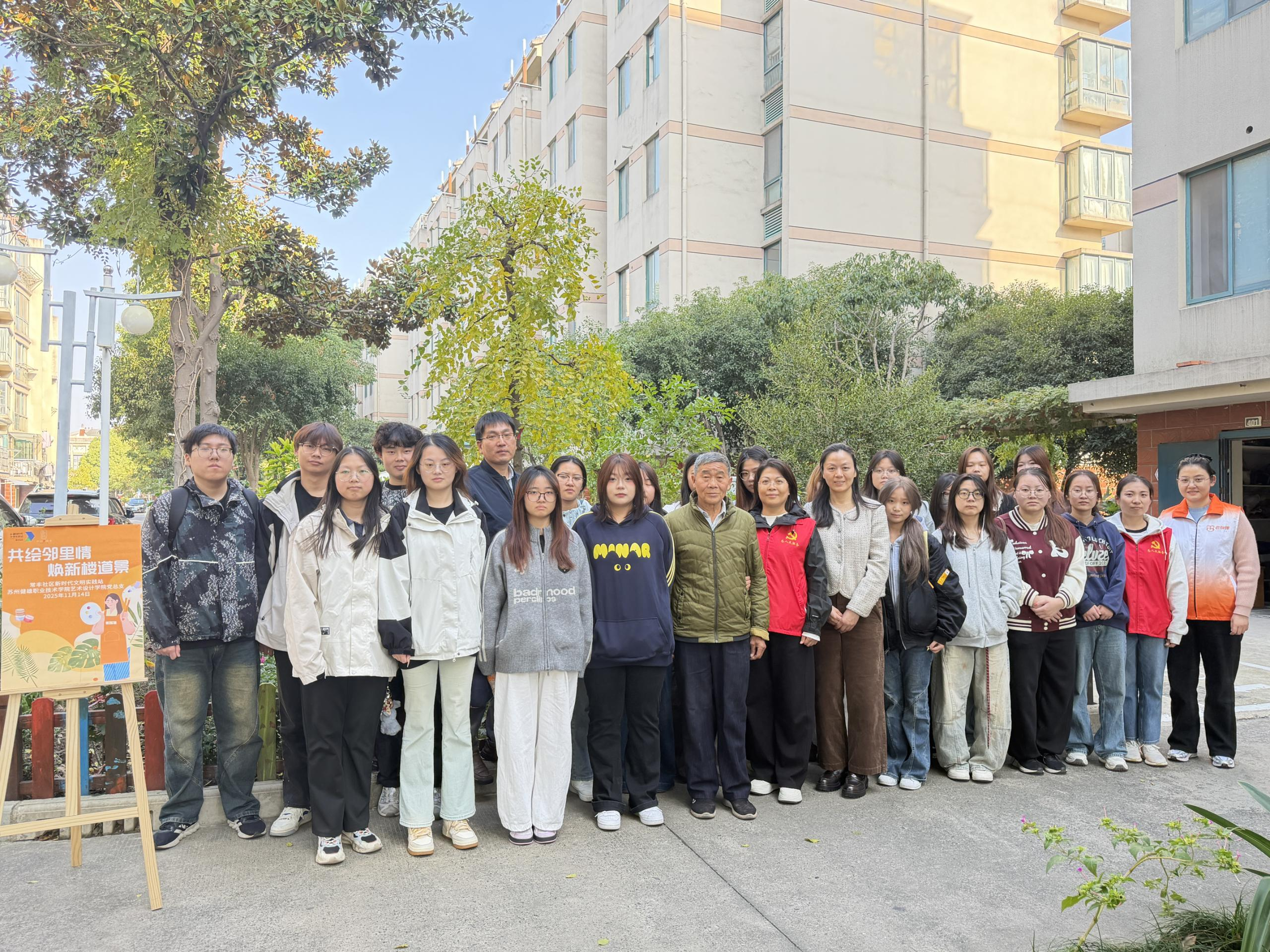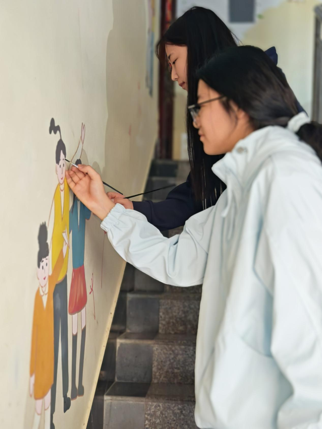 为推进美育与思政融合,近日,艺术设计学院组织学生赴常丰社区开展“共绘邻里情 换新楼道景”美化志愿服务,以专业技能服务社区,在服务中厚植家国情怀。