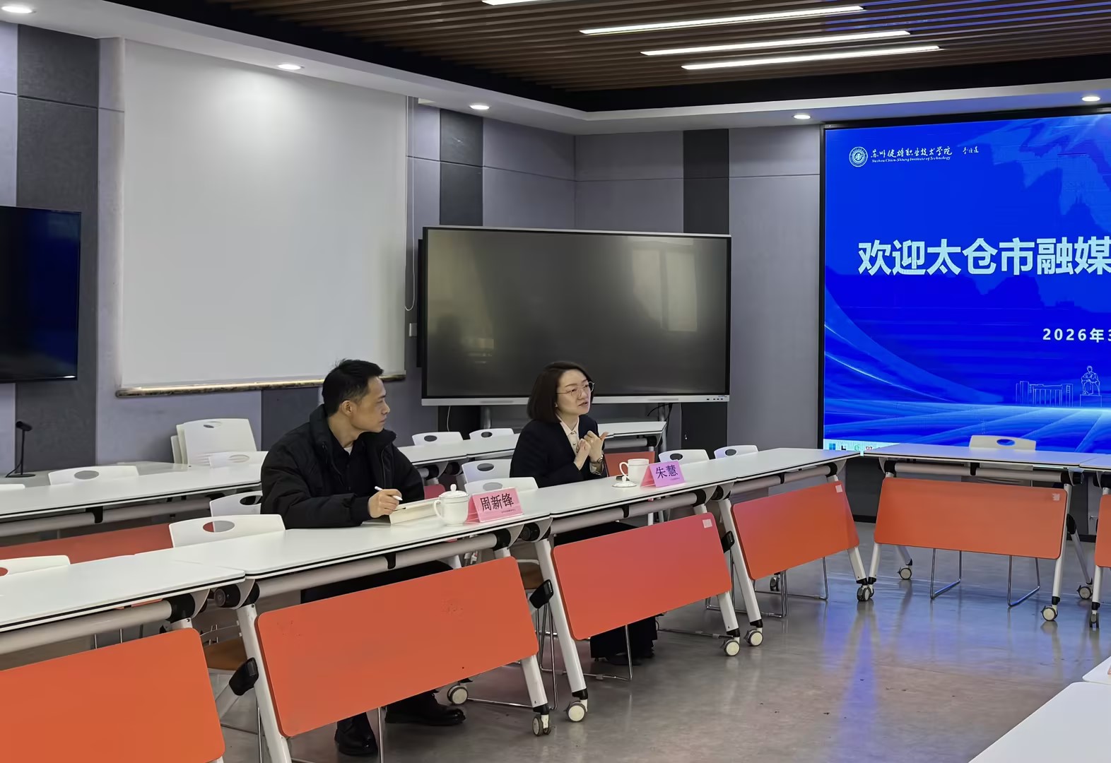 3月27日,太仓市融媒体中心党委书记、主任朱慧一行应邀来我校开展交流研讨。校党委书记林长永,艺术设计学院相关教师与来访嘉宾在A楼会议室座谈,围绕人才培养、校地合作等事宜深入交流。