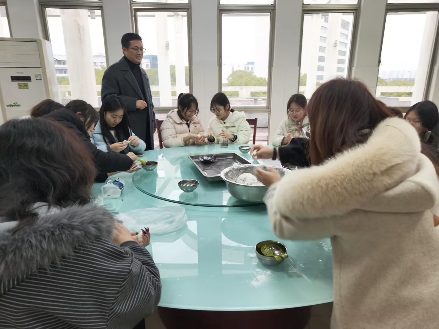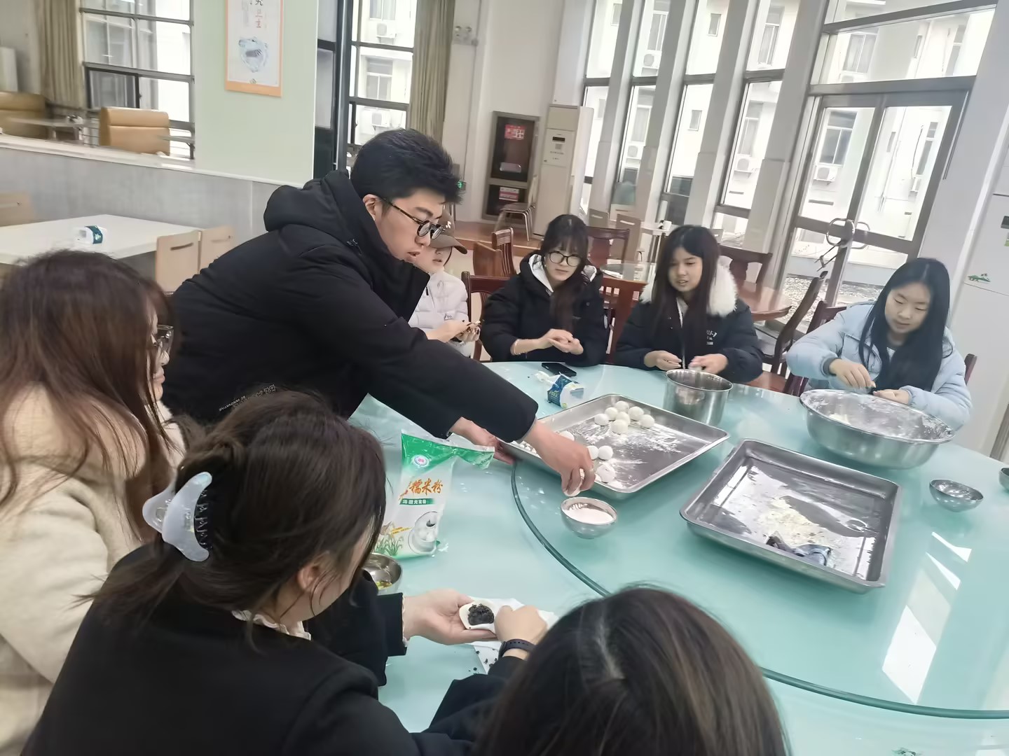 一碗汤圆暖胃更暖心下午时分,学院食堂楼欢声笑语不断,糯米粉、黑芝麻、豆沙馅等材料早已准备就绪。来自不同年级的住校生在辅导员和食堂师傅的指导下,揉面、拌馅、包制,动作从生疏到熟练,一个个圆润饱满的汤圆逐渐摆满餐盘。热气腾腾的汤圆出锅后,大家围坐品尝,分享寒假见闻与新学期的期待。