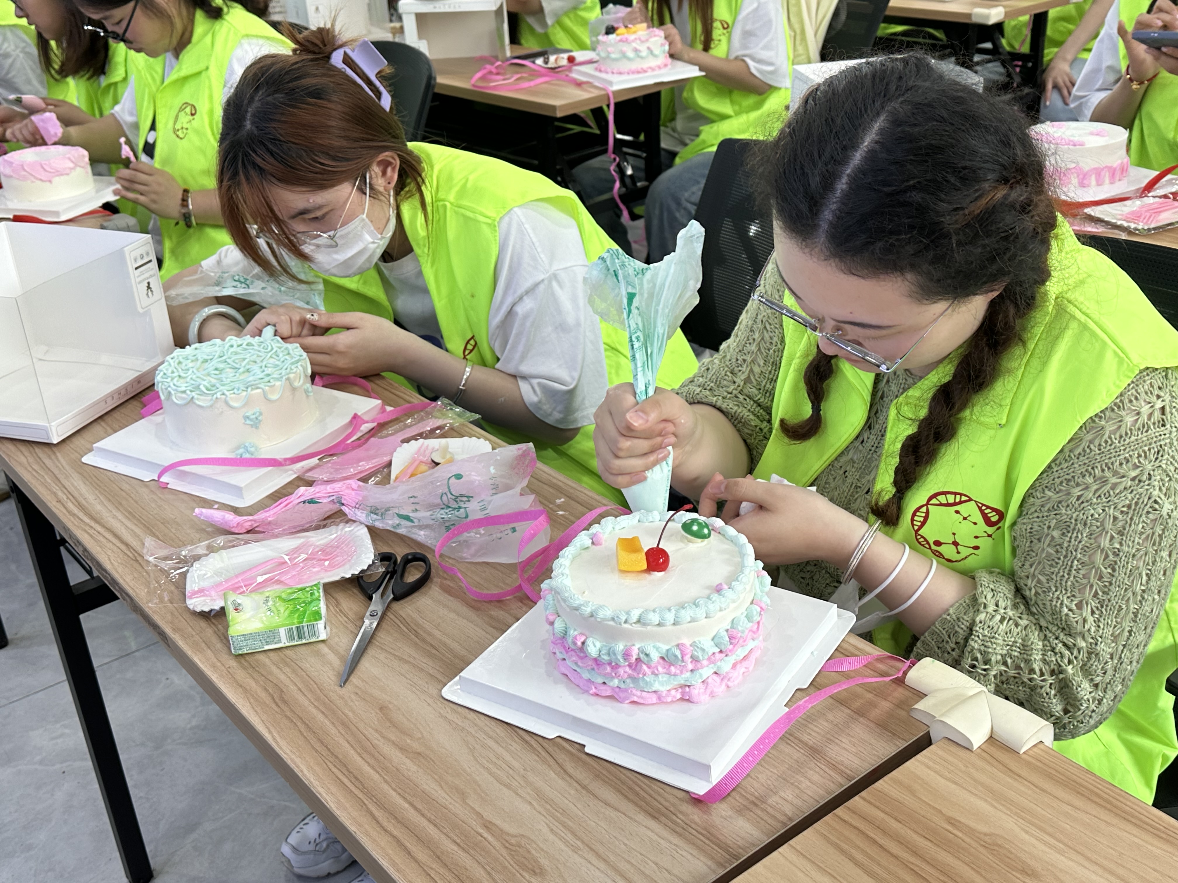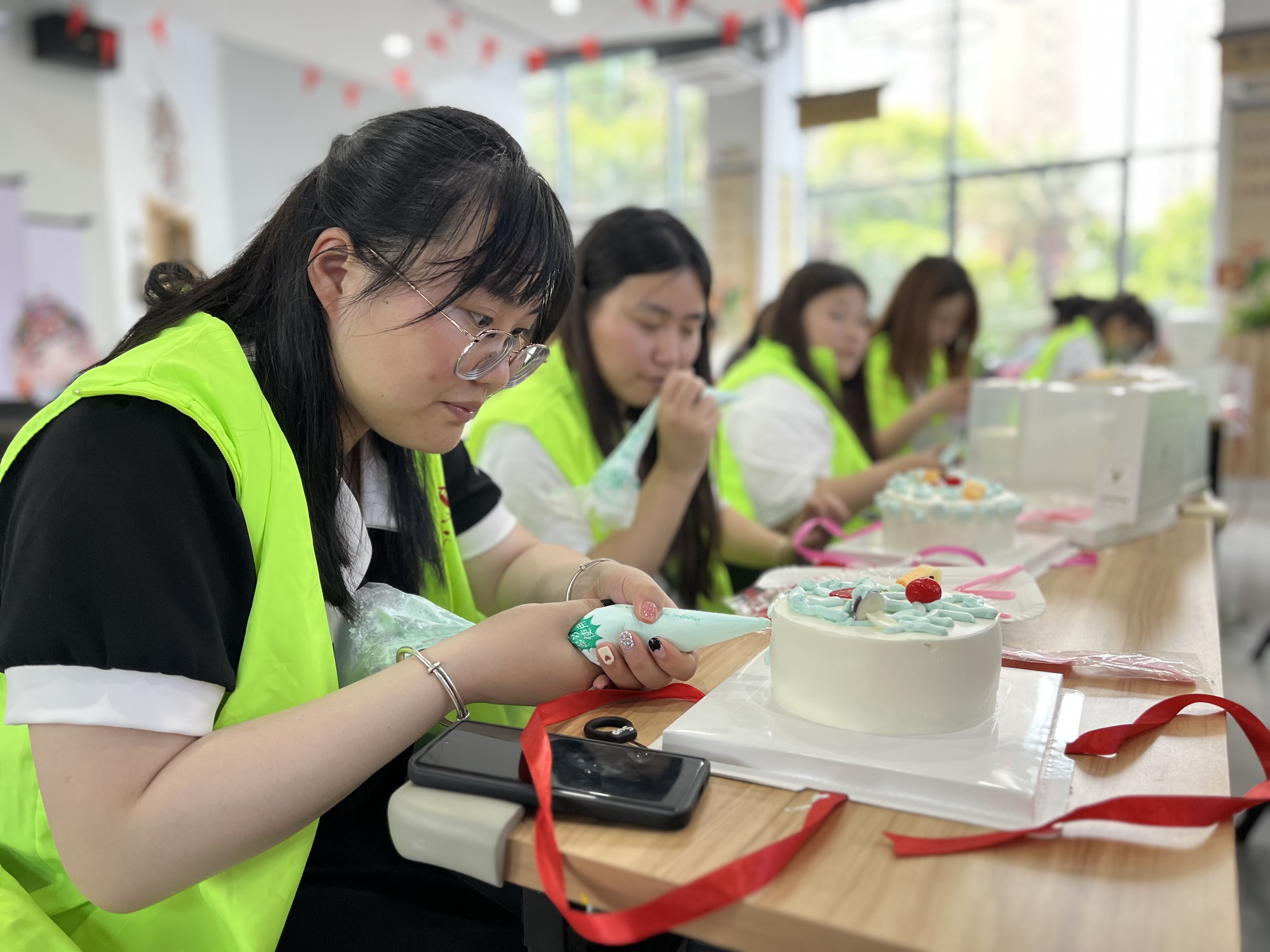 随后,良辅社区社工为同学们介绍了相关蛋糕知识,为接下来亲手制作蛋糕奠定了理论基础。在欢声笑语中,一个个充满青春气息的蛋糕制作成功,大家互相试吃、分享喜悦,彰显青春的光彩。