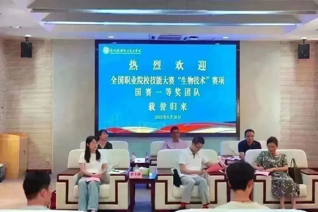 8月28日上午,我院举行2023 年“生物技术”赛项国赛一等奖团队欢迎活动,祝贺获奖团队载誉而归。学院党委书记苏霄飞出席活动并讲话,学院党委副书记、院长林长永主持会议,副院长周晓刚、生物医药学院和教务处相关负责人,获奖学生、指导老师团队、领队参加活动。