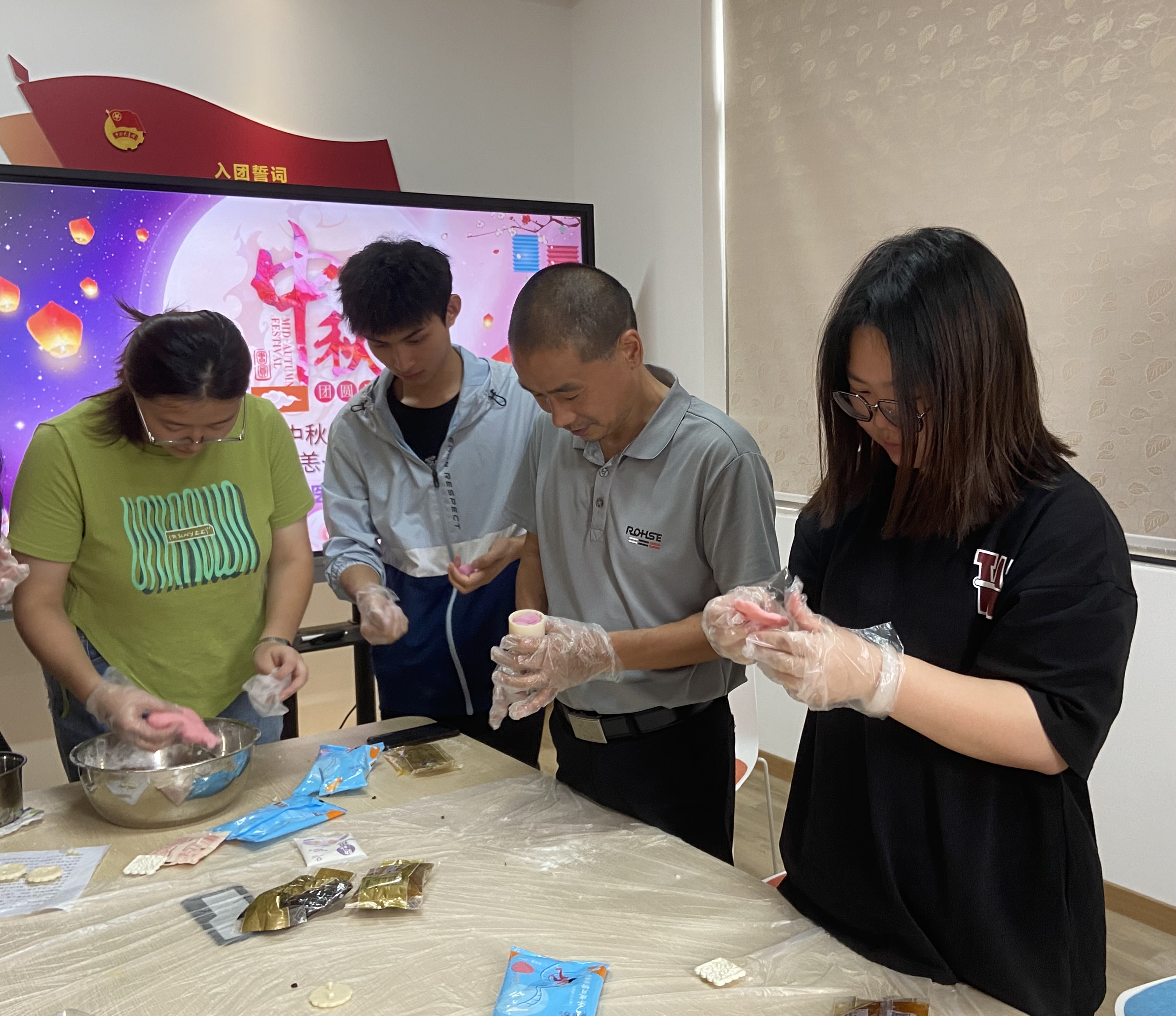 曹书记代表学院全体教师为同学们送上了节日祝福,与大家就入校以来学习和生活进行了交流。在学生会成员的展示与引导下,师生一起了解中秋节的传统习俗,并亲手制作精美月饼。