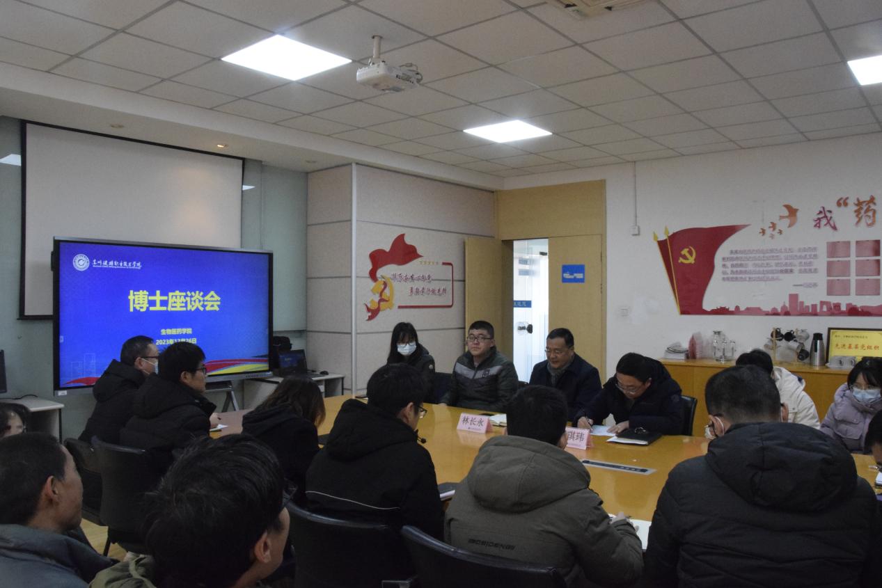 会上,各位博士教师交流了自己近期学习、工作及生活情况并对教学设施完善、实验室建设管理、课务安排、校园文化建设等方便提出了许多建设性的意见和建议。林院长听了大家发言后表示,学校将进一步加大对生物医药学院的投入,不断改善实验实训条件,也希望广大博士加强研究,在教学、科研、社会服务等方面贡献自己的智慧和才能。