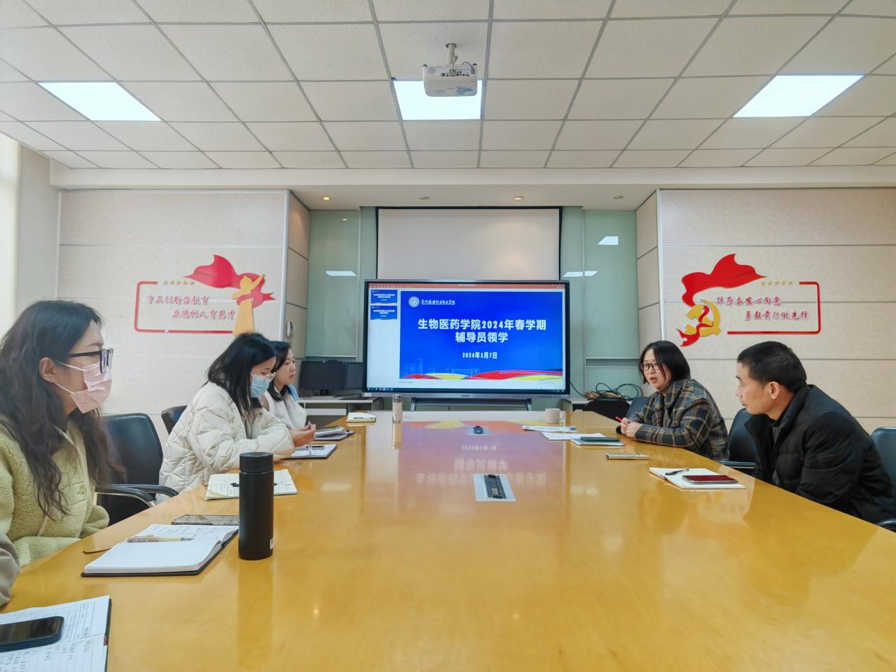 3月7日下午,生物医药学院在D3-510召开了2024年春学期第一次辅导员领学工作会议,会议由学院党总支副书记王玉主持,党总支书记曹跃兴、学院全体辅导员参加。