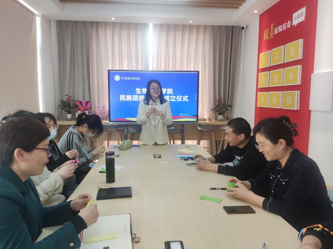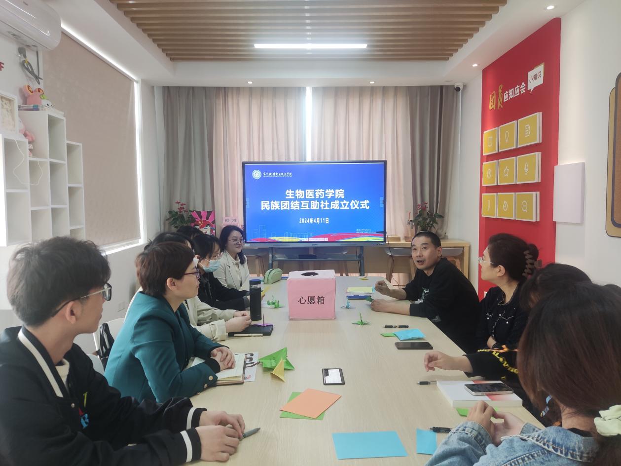 为了深入学习贯彻党的二十大精神,铸牢中华民族共同体意识,进一步深入了解少数民族学生的思想、学习和生活情况,帮助解决学习和生活中的困惑,4月11日中午,生物医药学院学生在“一站式”学生社区开展了民族团结互助活动。生物医药学院党总支书记曹跃兴、院长顾准、党员教师代表刘尚莲、冒小妹、霍岩及少数民族学生代表参加了会议。