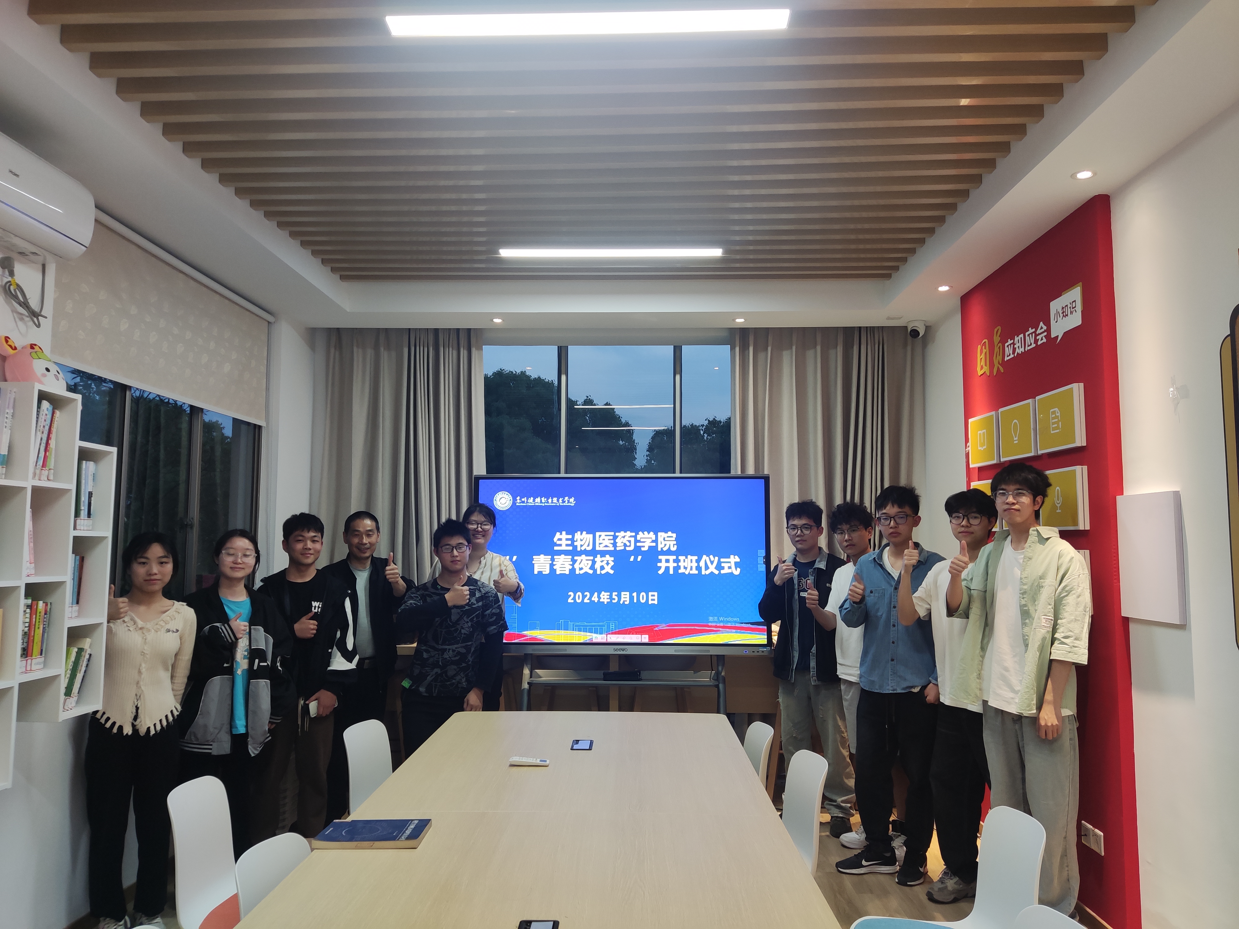 5月10日晚,生物医药学院在一站式学生社区迎来了“青春夜校”开班仪式。此次活动旨在开展学生思想政治教育,为广大生物医药学子提供一个晚间学习交流的平台,促进学术与实践的深度融合。生物医药学院党总支书记曹跃兴,“青春夜校”专业老师张秋怡,辅导员贺小艳共同参加了开班仪式.