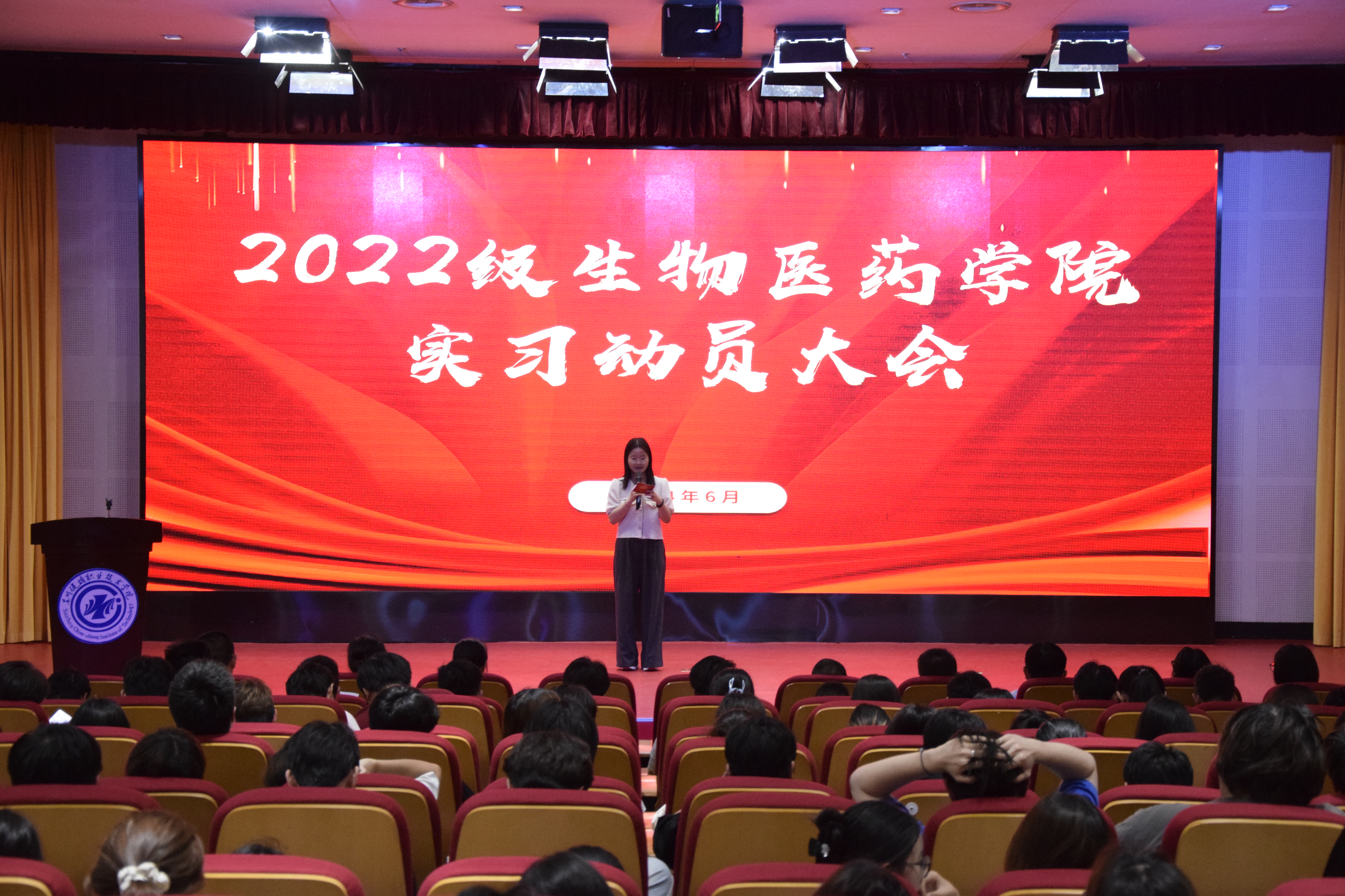 为有效促进学生的实习就业工作,明确未来的工作方向。6月16日晚,生物医药学院在图书馆报告厅召开了2022级生物医药学院实习动员大会。学院党总支书记曹跃兴、院长顾准、党总支副书记王玉、副院长程炜、全体2022级专职辅导员,班主任及2022级全体同学参与此次活动。