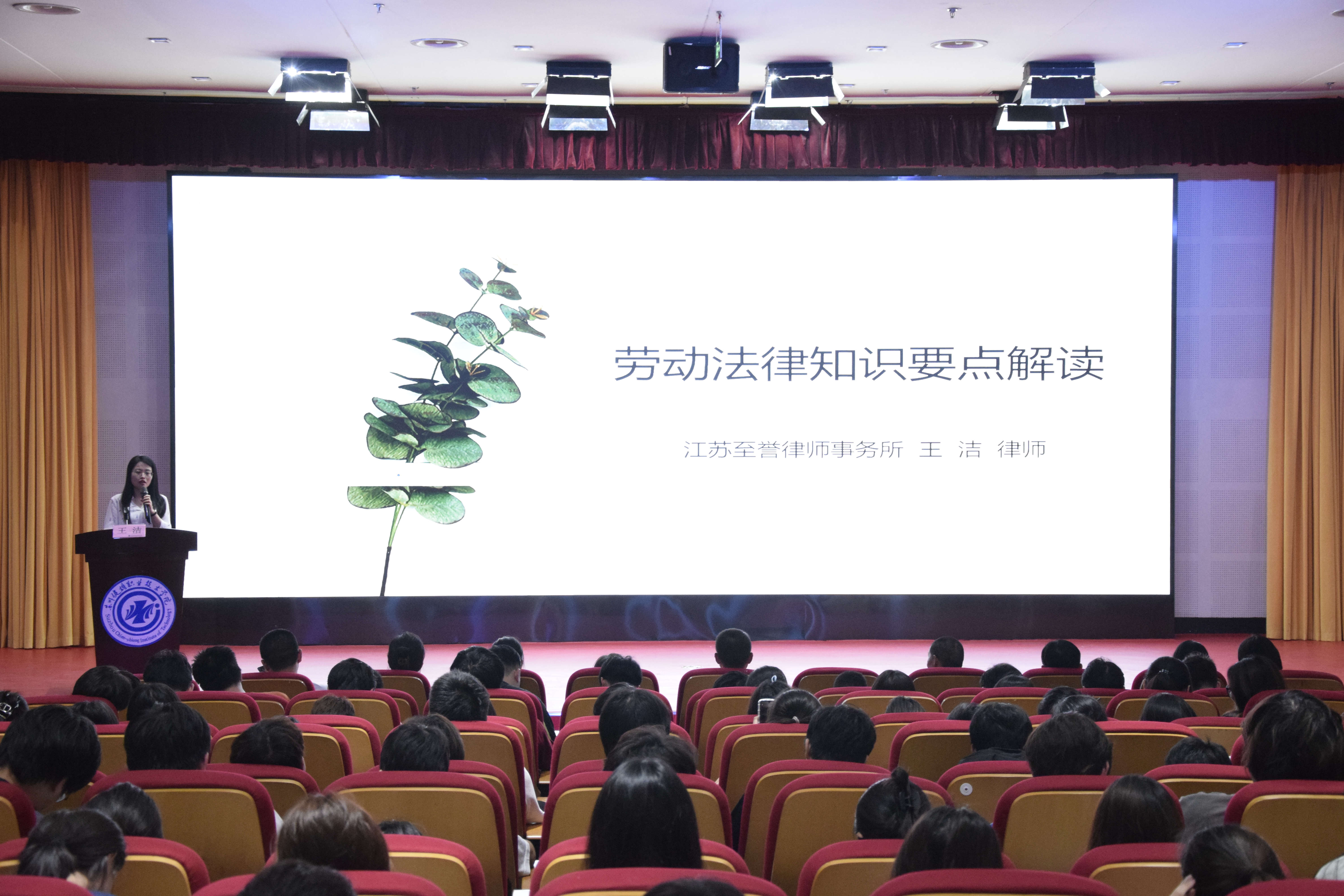 随后,曹跃兴书记进行实习安全和日常行为规范教育,他结合近年来发生的一些安全事故案例,详细地向同学们讲解了实习期间可能遇到的安全风险及防范措施,提醒同学们要时刻保持警惕,确保人身安全。程炜副院长进行实习动员发言,并对实习政策进行了详细说明。他详细介绍了实习的时间安排、学分要求、成绩评定等方面的政策规定,让同学们对实习有了更加清晰的认识。学院还特别邀请了江苏至誉律师事务所合伙律师、太仓市人民法院特邀调解员王洁律师进行就业法律知识专题讲座。