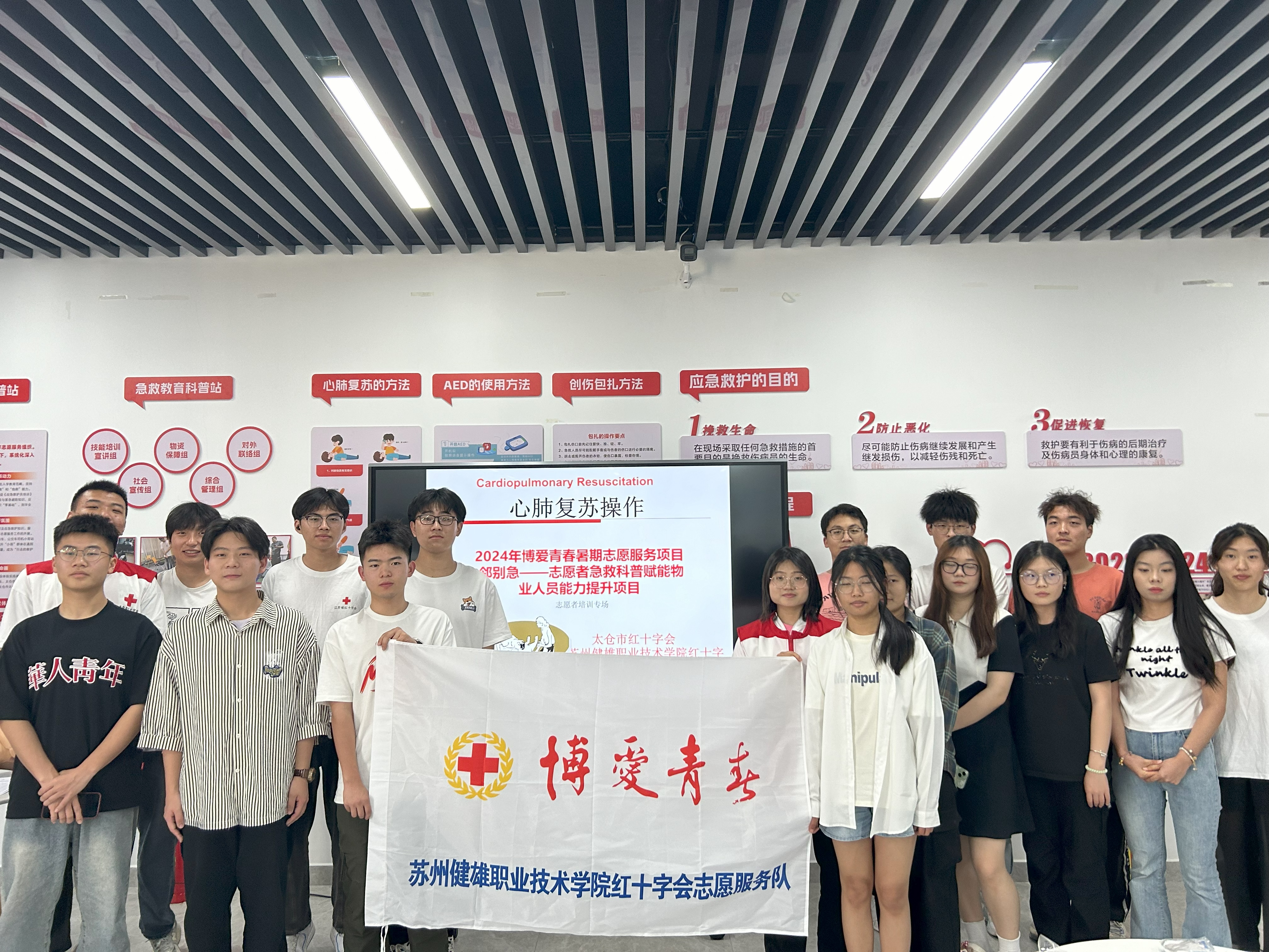 现场,项目组志愿者进行了应急救护相关内容的培训,范平平老师为同学们讲解心肺复苏、包扎等基本的应急救护方法,通过理论学习和实操技能训练相结合的方式,为同学们更好地开展后期的志愿服务打下了坚实的基础。