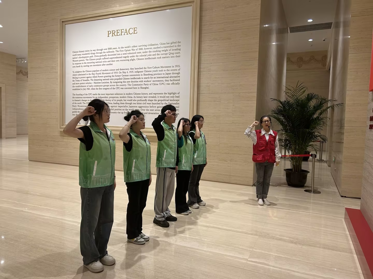 在参观过程中,进行了庄严的宣誓活动,表达了他们对党的忠诚和为实现中华民族伟大复兴的中国梦贡献力量的决心。他们纷纷表示,将继承和发扬革命先烈的优良传统,以实际行动践行社会主义核心价值观,为推进中国式现代化贡献青春力量。