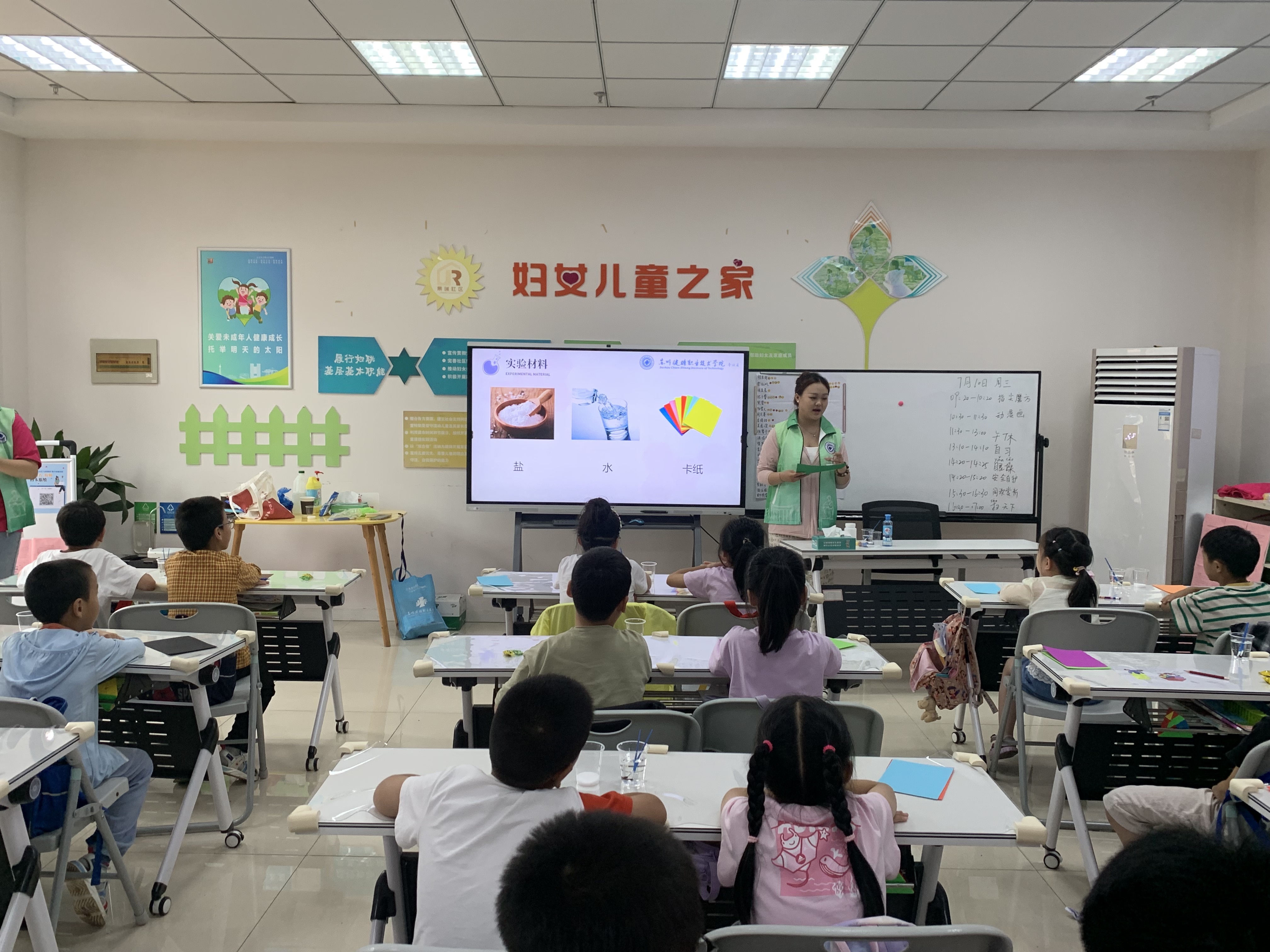 为积极响应国家关于青少年科学素质提升的号召,深入贯彻党的二十大精神,苏州健雄职业技术学院生物医药学院“童心相依 爱在娄城”志愿服务团携手太仓市“七彩夏日”青少年暑托班,于炎炎夏日中为孩子们送去了一场“趣味科学实验”。本次课程分别走进太仓市的娄东街道惠阳社区、娄东街道景瑞社区,通过生动有趣的实验,激发孩子们对科学的探索欲和好奇心。