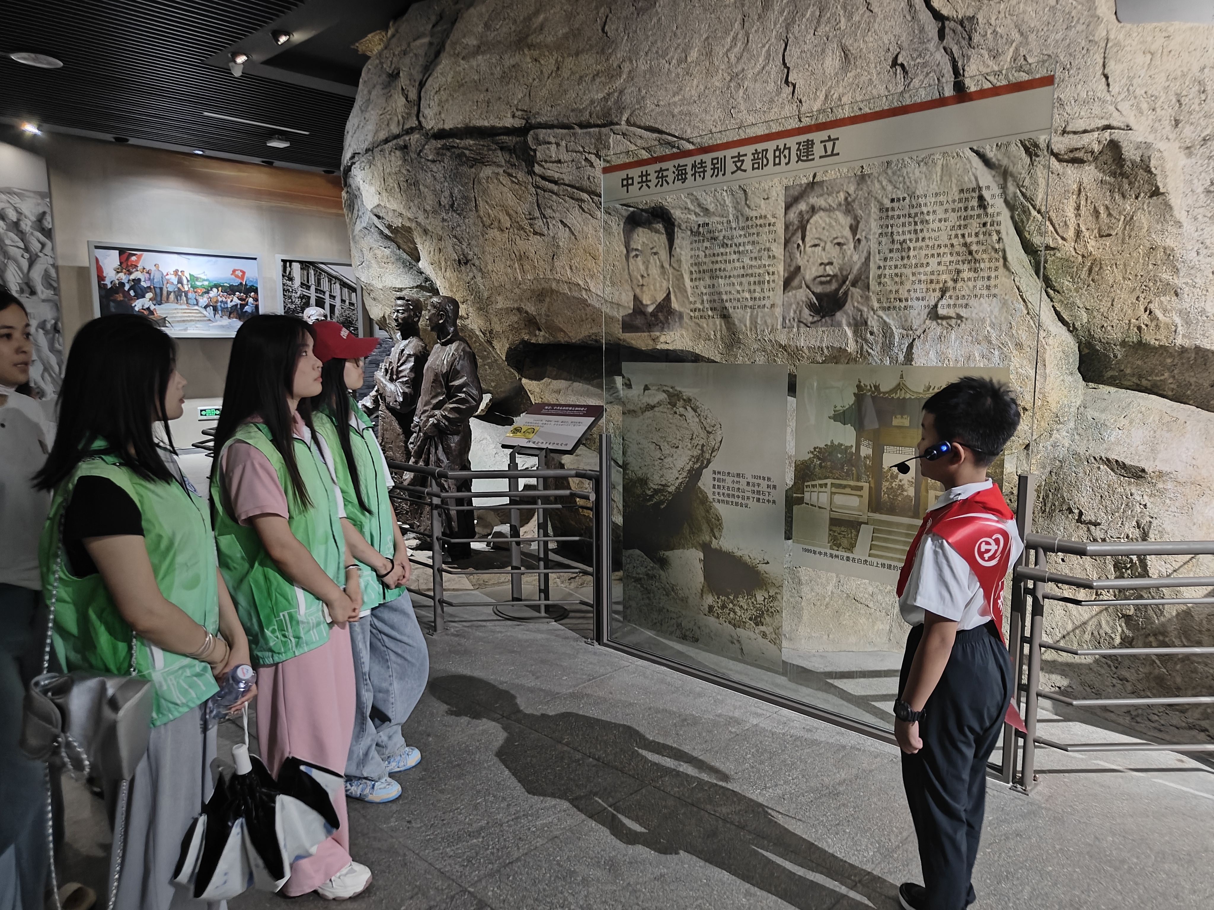 重温革命艰辛,铭记英雄事迹:在纪念馆内,小讲解员用生动的语言和详实的历史资料,为实践团成员们描绘了一幅幅波澜壮阔的历史画卷。从连云港地区的抗日救亡运动,到人民群众与日寇的英勇斗争,每一个故事都让人动容。实践团成员们被革命先辈们的英勇无畏和坚定信念深深打动,他们纷纷表示,要更加珍惜来之不易的和平生活,努力学习,报效祖国。
