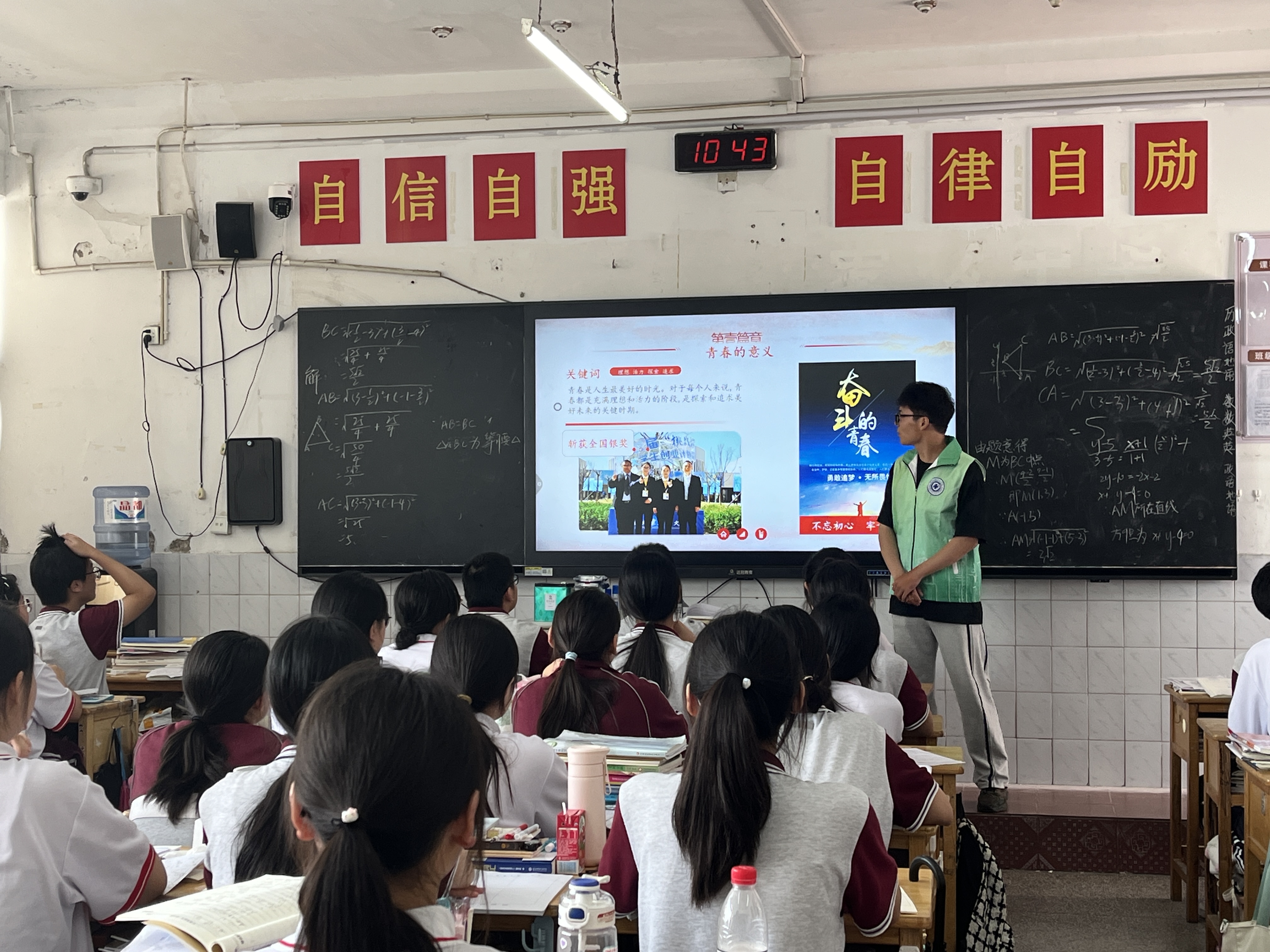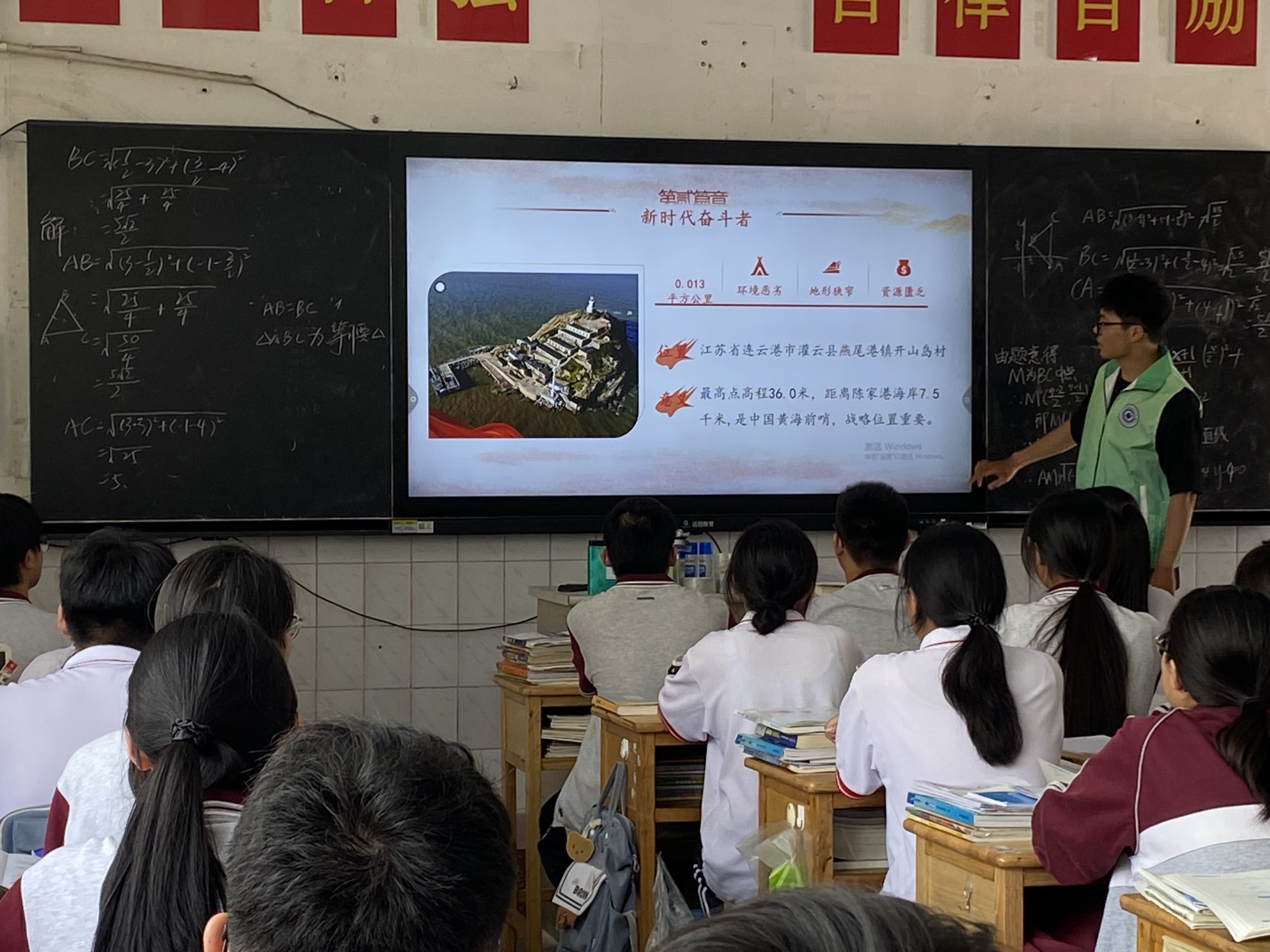 英雄事迹,深入人心:在东海二中的课堂上,实践团成员化身为故事的讲述者,将王继才三十二载守岛卫国的壮丽篇章缓缓展开。从最初踏上开山岛的那一刻起,王继才便以海岛为家,以国旗为伴,用青春和热血诠释了什么是忠诚与担当。他不仅是国防前线的坚定守护者,更是岛屿建设的积极参与者,用双手改善环境,用智慧推动发展,让这座孤岛焕发出勃勃生机。实践团成员通过生动的讲述,让在场的每一位学生都仿佛置身其中,亲眼见证了王继才与妻子王仕花携手并肩,共克时艰的感人瞬间。学生们被王继才那种“家就是岛,岛就是国”的家国情怀深深打动,纷纷表示要学习他那种不畏艰险、无私奉献的精神。