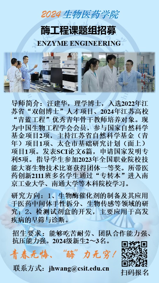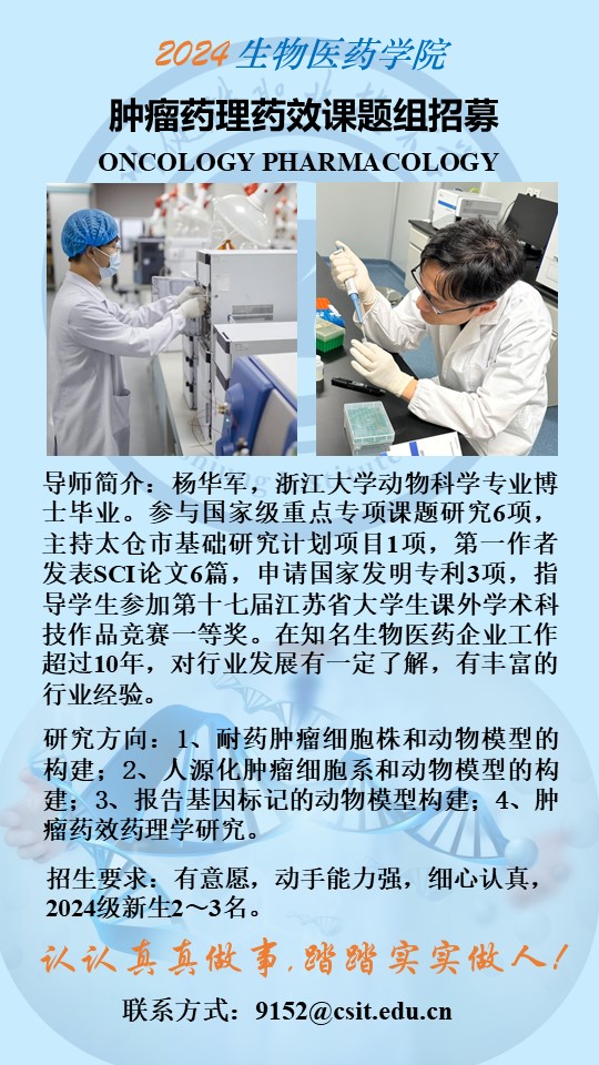 本次课题组招新活动是一次具有重要意义的科研人才选拔活动。通过严格的选拔过程,课题组将吸纳更多具有潜力的青年学子,共同推动生物医药领域的前沿研究。我们相信,在课题组的悉心培养下,新成员除了能够跟导师做科研外,还能参加创新创业大赛,培养学生创新思维,提升创新能力。我们期待更多的青年学子能够加入到学院的科研团队中来,共同探索未知的科研世界,实现个人的成长与价值的提升。(文/范平平 核/汪建华)