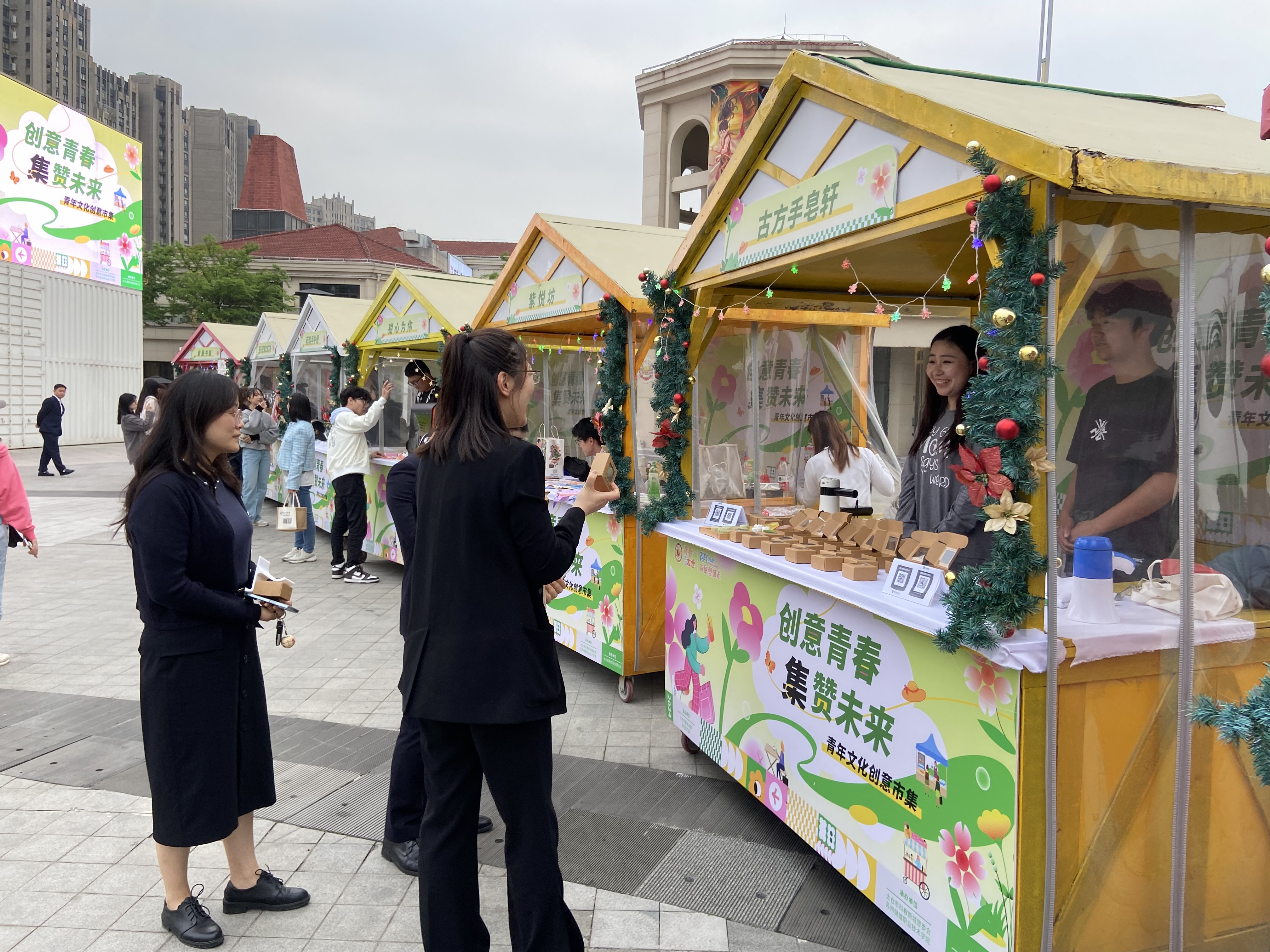 (志愿者们在海运堤青年创意市集设置4个摊位,推广自主设计的各项文创产品)