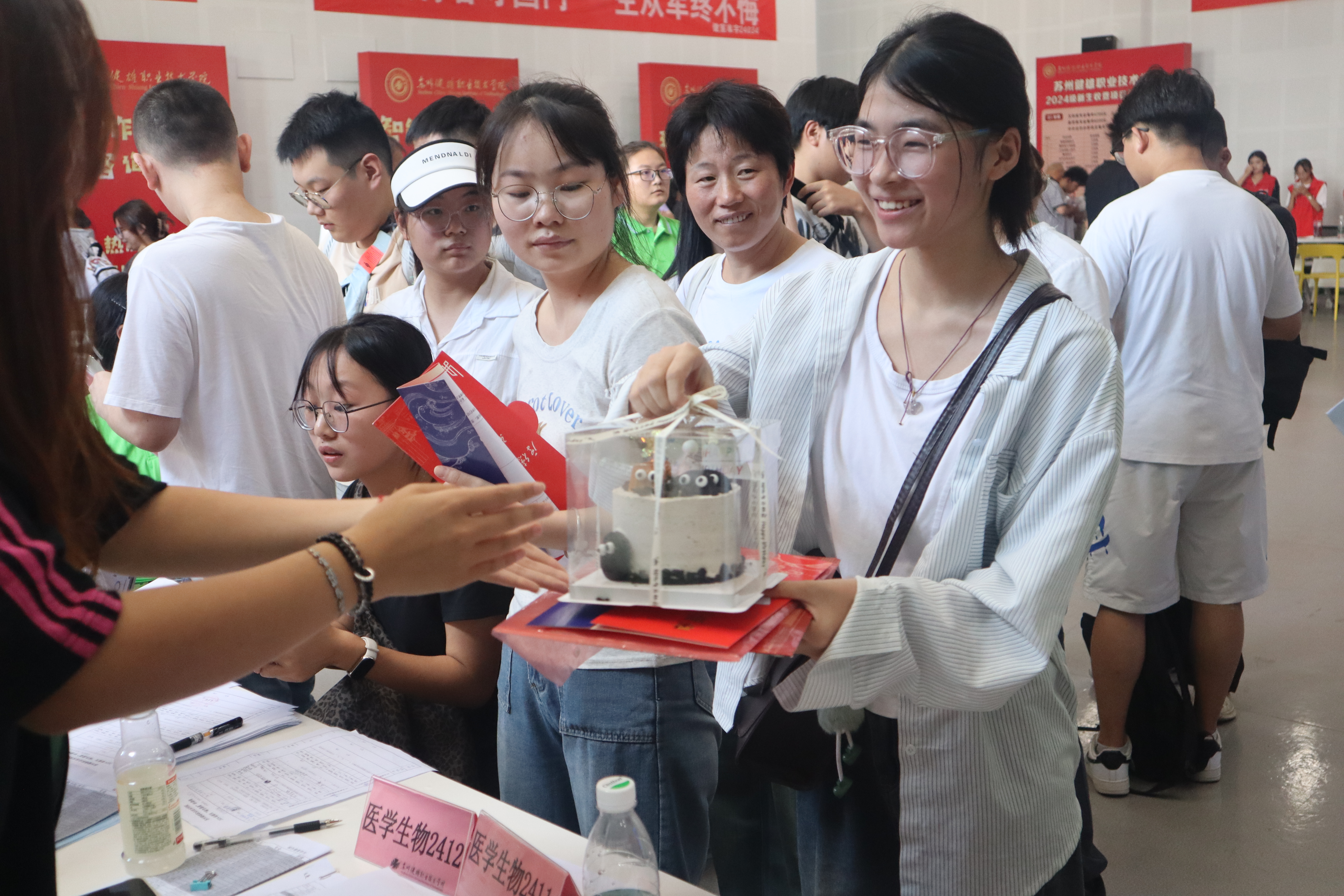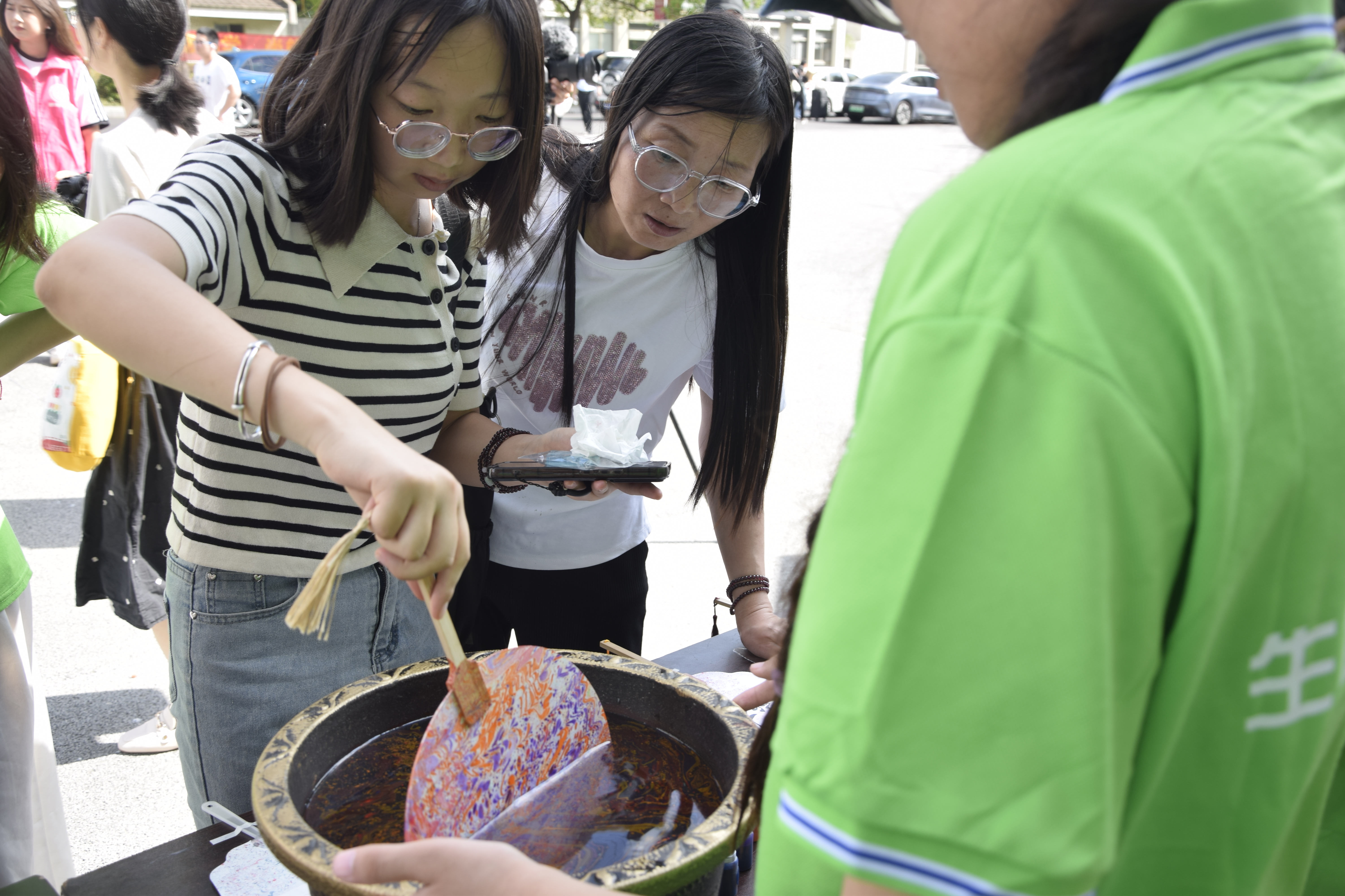 为了进一步提升新生报到体验,我院制作了具有生物医药特色的展板和立牌,将活动现场布置得别具一格。首先,学院为新生准备了中药谜语竞猜环节,拉近新生与学院的“距离”,大家积极参与,拍照打卡,并将自己写有心愿的便利贴粘到特色文化墙上。接着,新生在志愿者的指引下,有序领取手工皂,并且亲手制作了香囊、漆扇以及药材文创发卡,有效地激发了同学们的专业兴趣。学院还准备了免费的中药茶饮供新生品尝,现场茶香四溢,不仅让新生们在活动中感受到了中医药的独特韵味,也让他们体会到了学院的关怀和温暖。