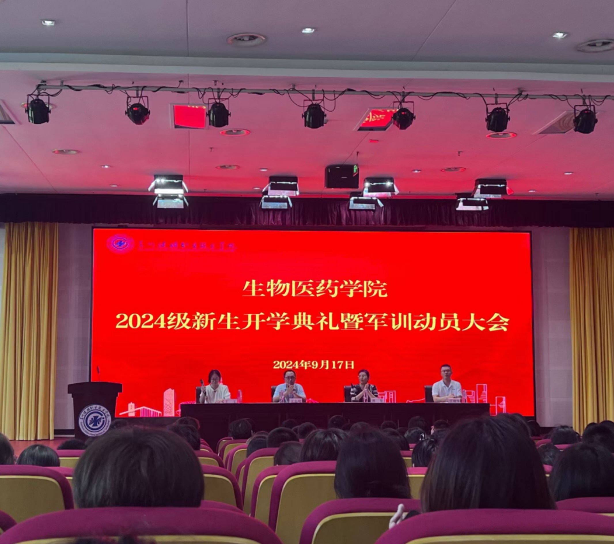 为认真落实立德树人根本任务,深入推进思想政治教育工作,帮助2024级新生在大学阶段开好头起好步,9月17日,生物医药学院在图书馆报告厅举行2024级新生开学典礼暨军训动员大会,生物医药学院院长顾准、副院长汪建华,党总支书记王志明,新生辅导员、班主任,全体2024级新生参加会议。会议由党总支副书记王玉主持。