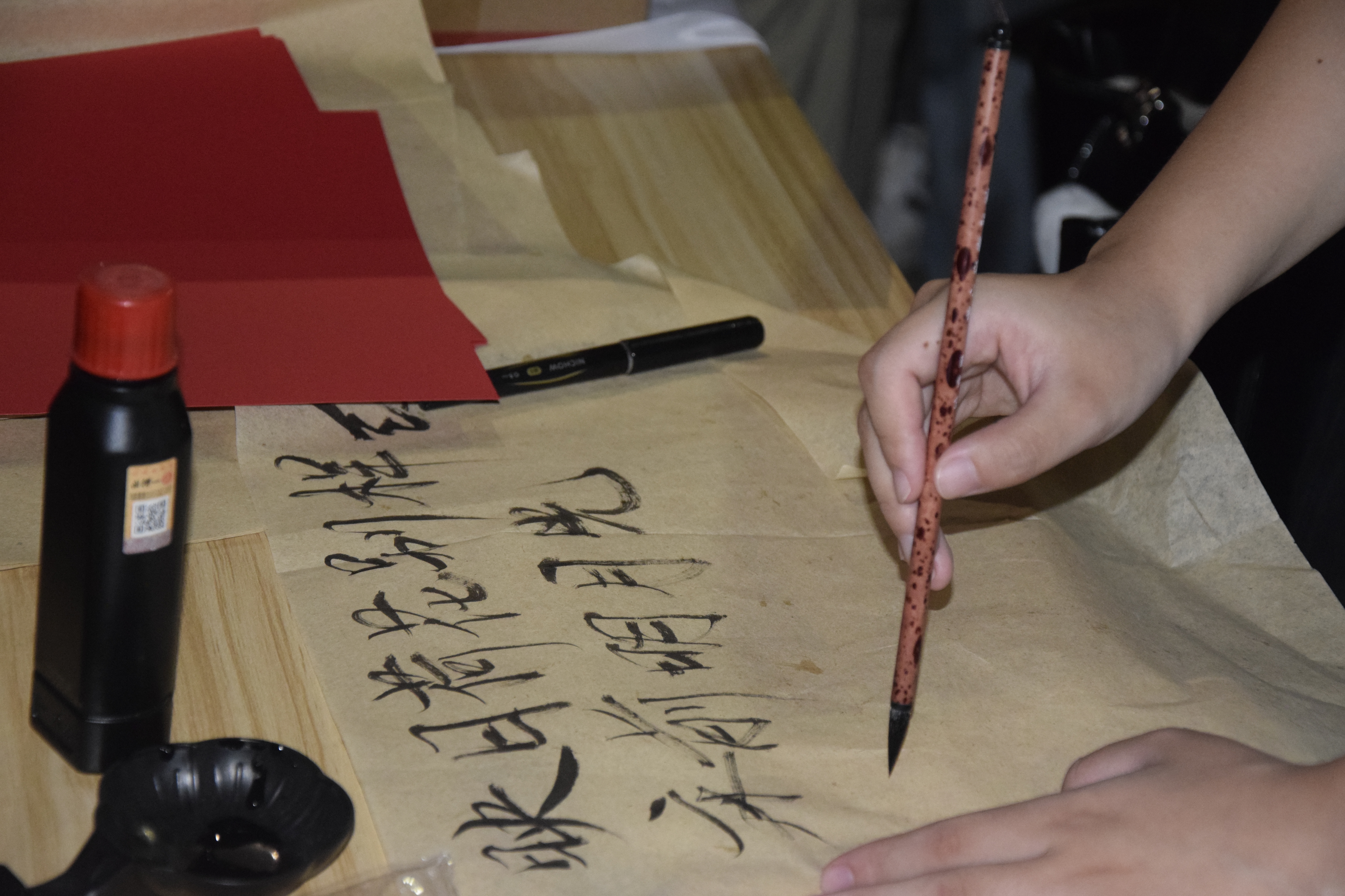 在这个充满温情与希望的时刻,我们特别设立了祝福的环节。参与者将用水墨在书签上写下自己的祝福语,交织的欢笑声和欢呼声,洋溢着浓浓的欢乐,大家共同感受着喜乐的时光,充满着对好运的期盼。师生们纷纷挥毫泼墨,将他们对大家的祝福与期望化作一行行温暖的文字。“中秋佳节到,愿你们在学院这个大家庭中感受到家的温暖。”我院希望新生能尽快融入新的学习环境,建立起归属感,这不仅是对新同学的祝福,更是对他们未来的期许和鼓励。