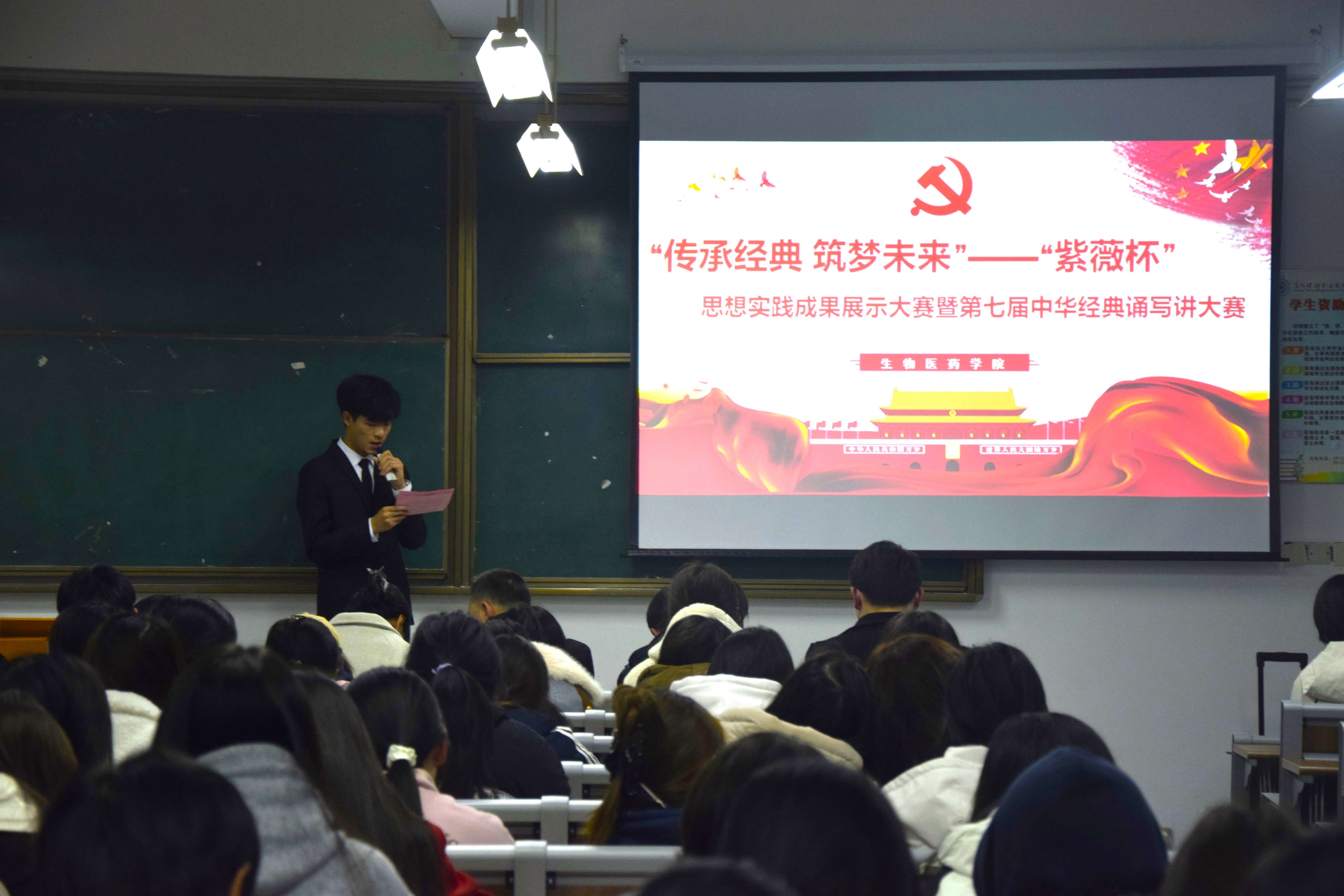 余音绕梁经典情,雅韵传颂中华魂。为深入贯彻落实党的二十届三中全会精神,推进学院思想政治理论课实践教学,挖掘和传承中华优秀文化。11月20日,生物医药学院成功举办“紫薇杯”思政实践课成果展示大赛暨第七届中华经典诵写讲大赛学院选拔赛。生物医药学院团总支书记刘豪杰,马克思主义学院吴洁等担任评委受邀出席活动。