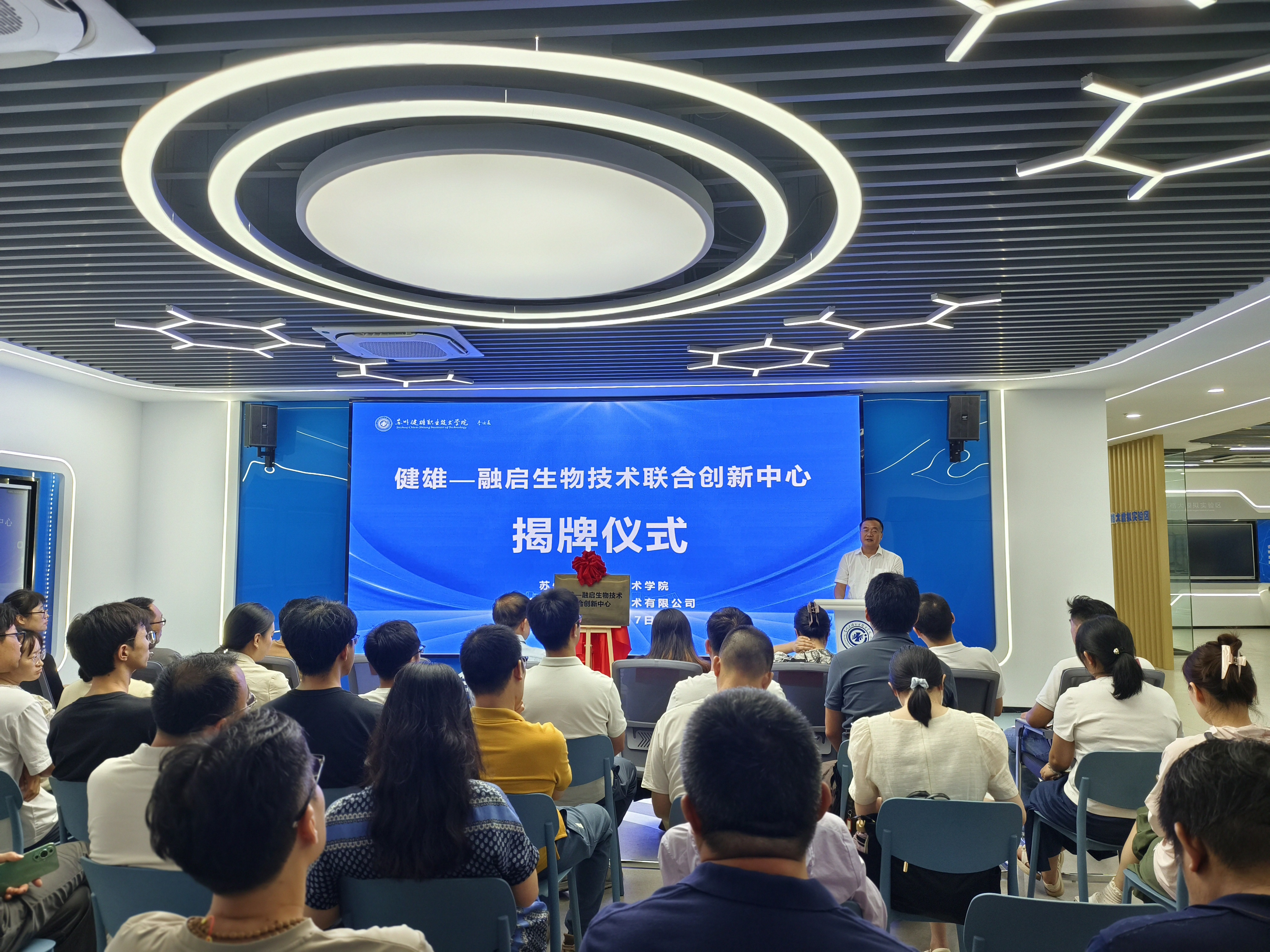 9月17日下午,健雄-融启生物技术联合创新中心揭牌仪式在学院E字楼全息虚拟仿真体验中心隆重举行,学院党委副书记、院长林长永,融启生物技术有限公司创始人兼CEO潘武宾,生物医药学院班子成员及全体博士参加揭牌仪式。