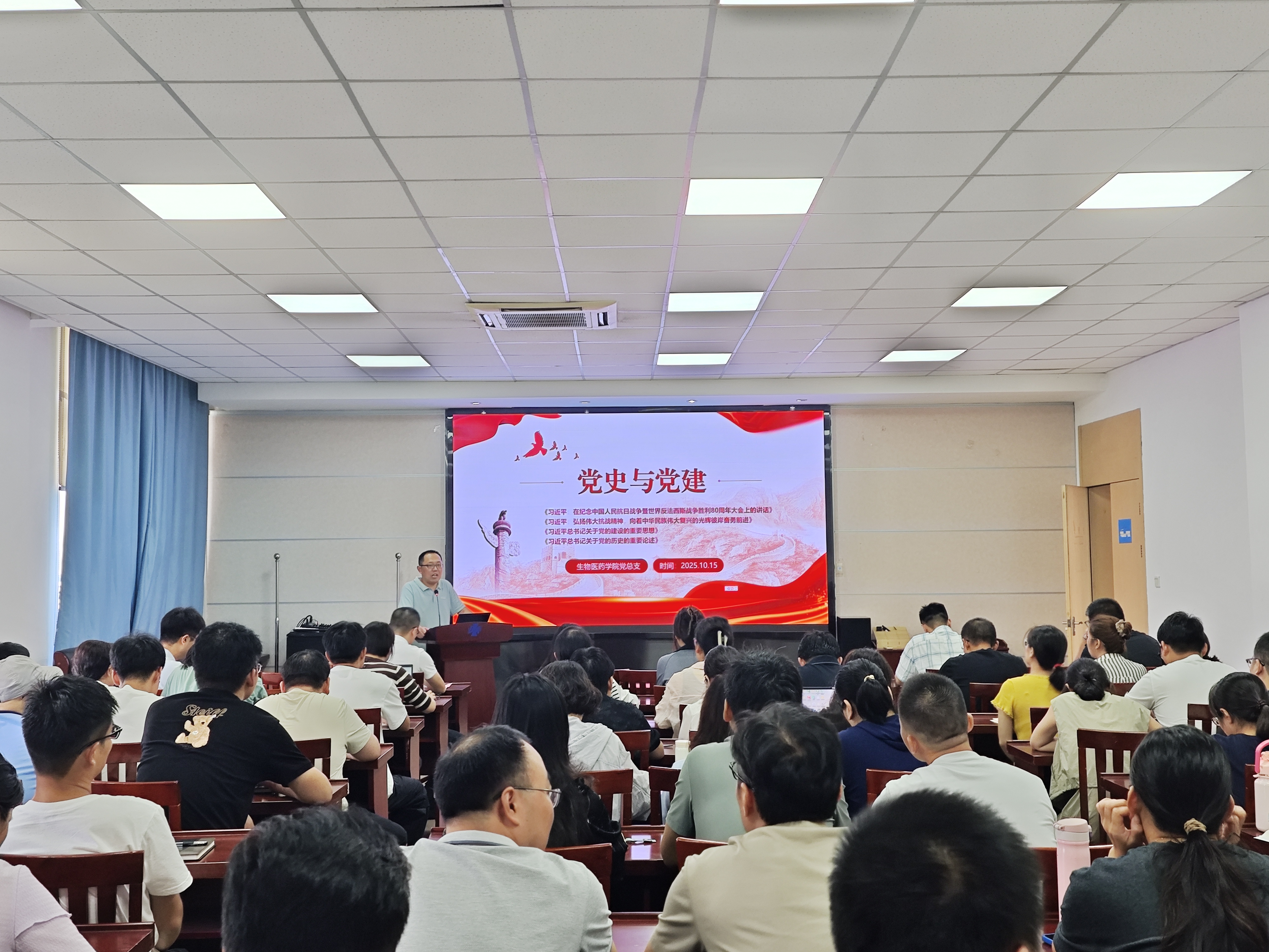 为深入学习贯彻习近平新时代中国特色社会主义思想,进一步强化理论武装、凝聚奋进力量。10月15日,生物医药学院党总支在D3-514会议室组织开展党史与党建专题党课学习,全体教职工参加本次活动。